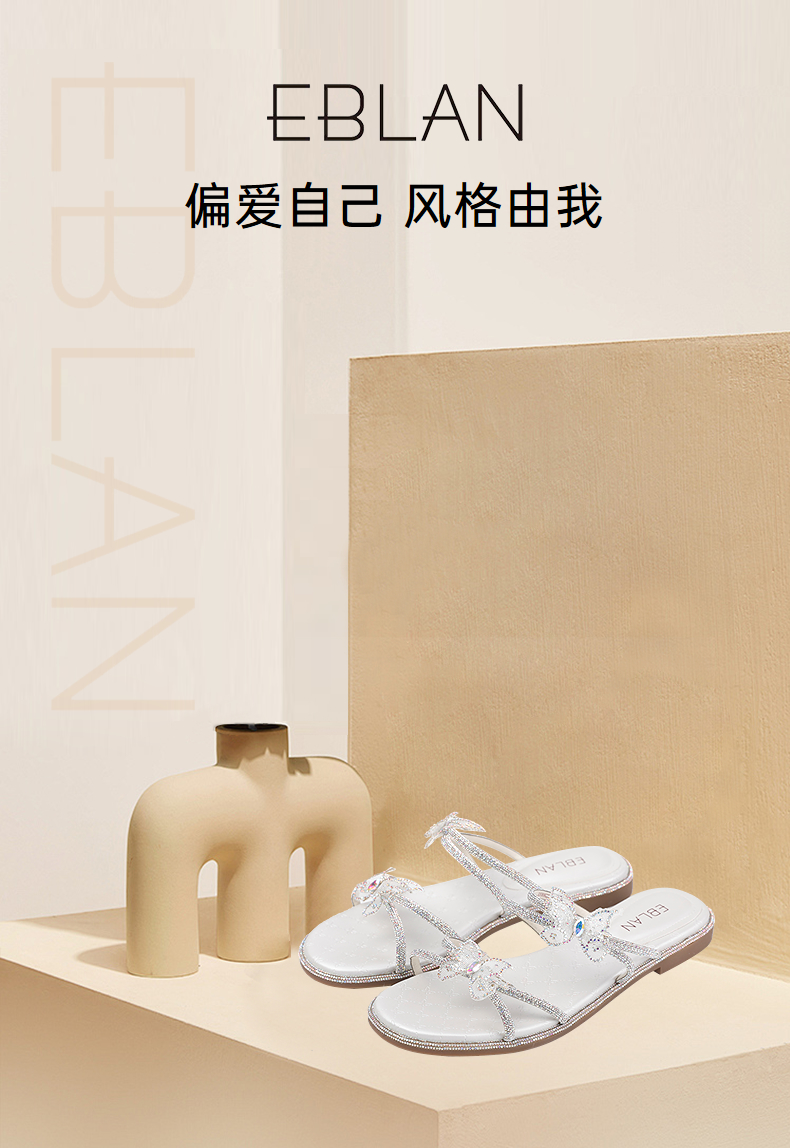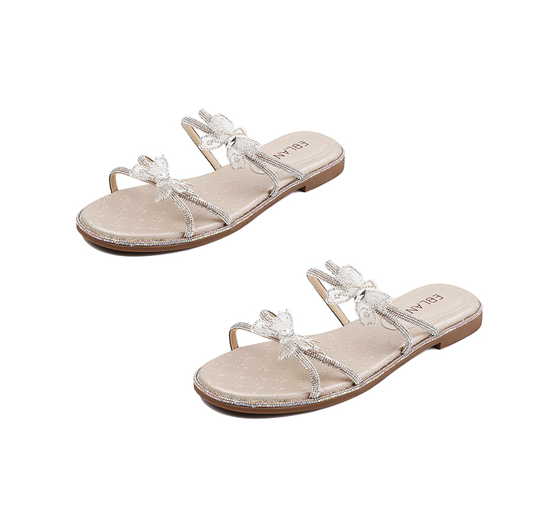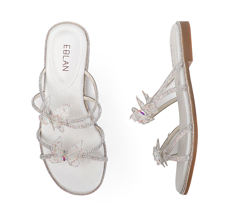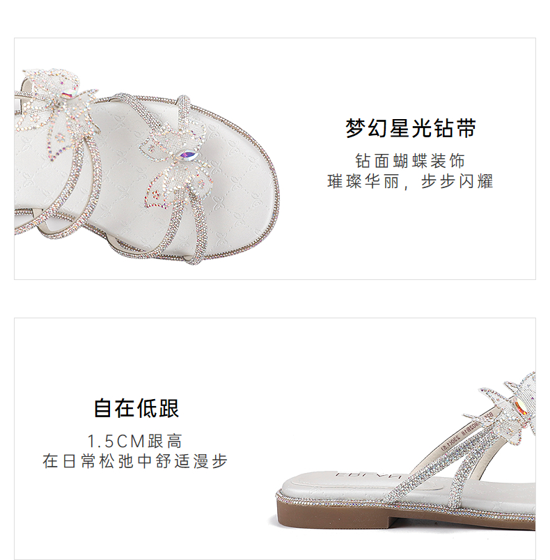 伊伴夏季网面烫钻蝴蝶星光钻带凉鞋B25360902