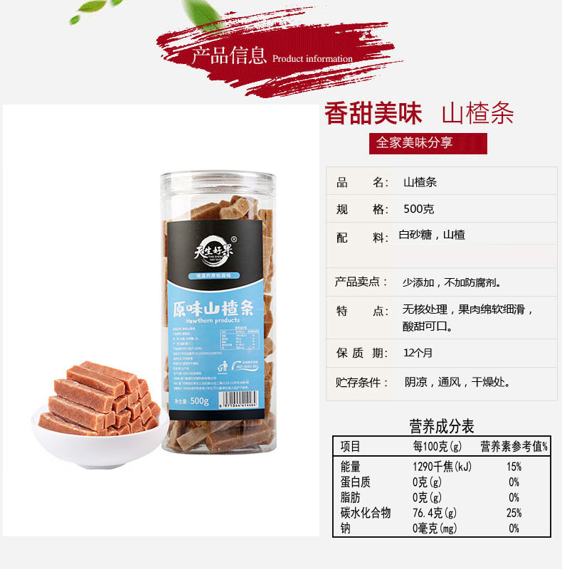 天生好果罐装原味山楂条500克【XPTX】