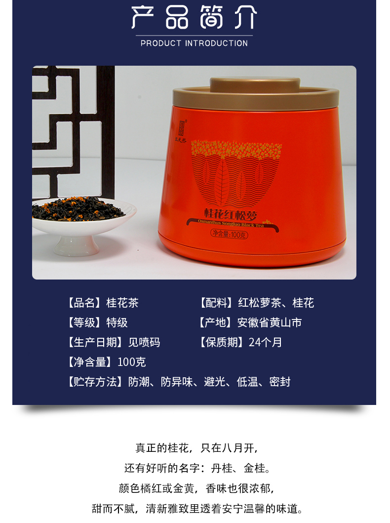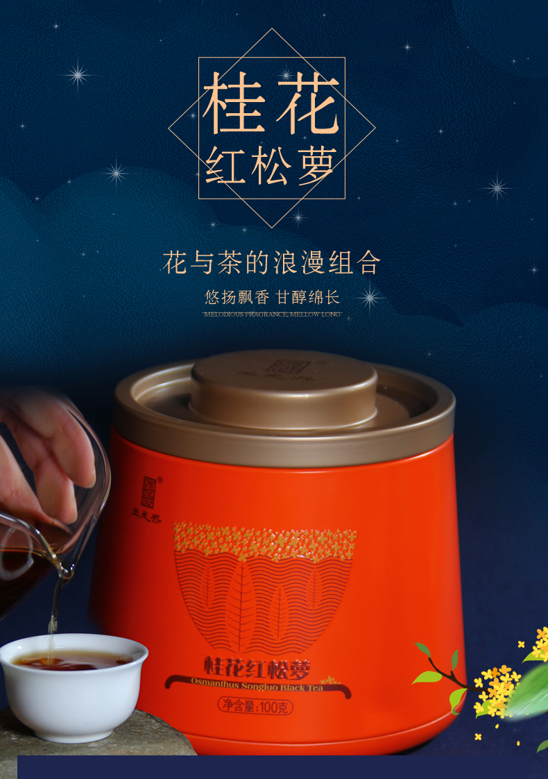 【桂花茶】2024王光熙桂花茶红松萝茶窨制桂花特级祁门红茶99g罐装