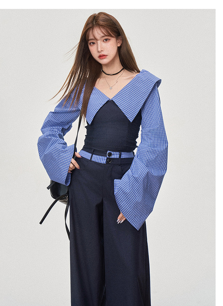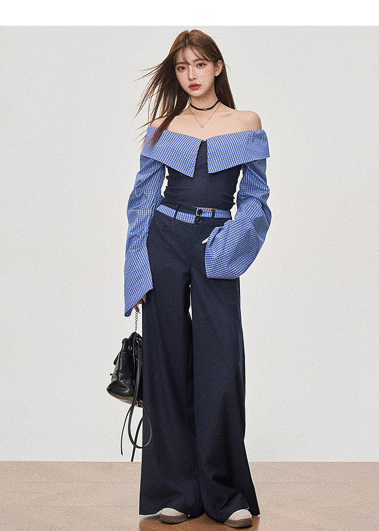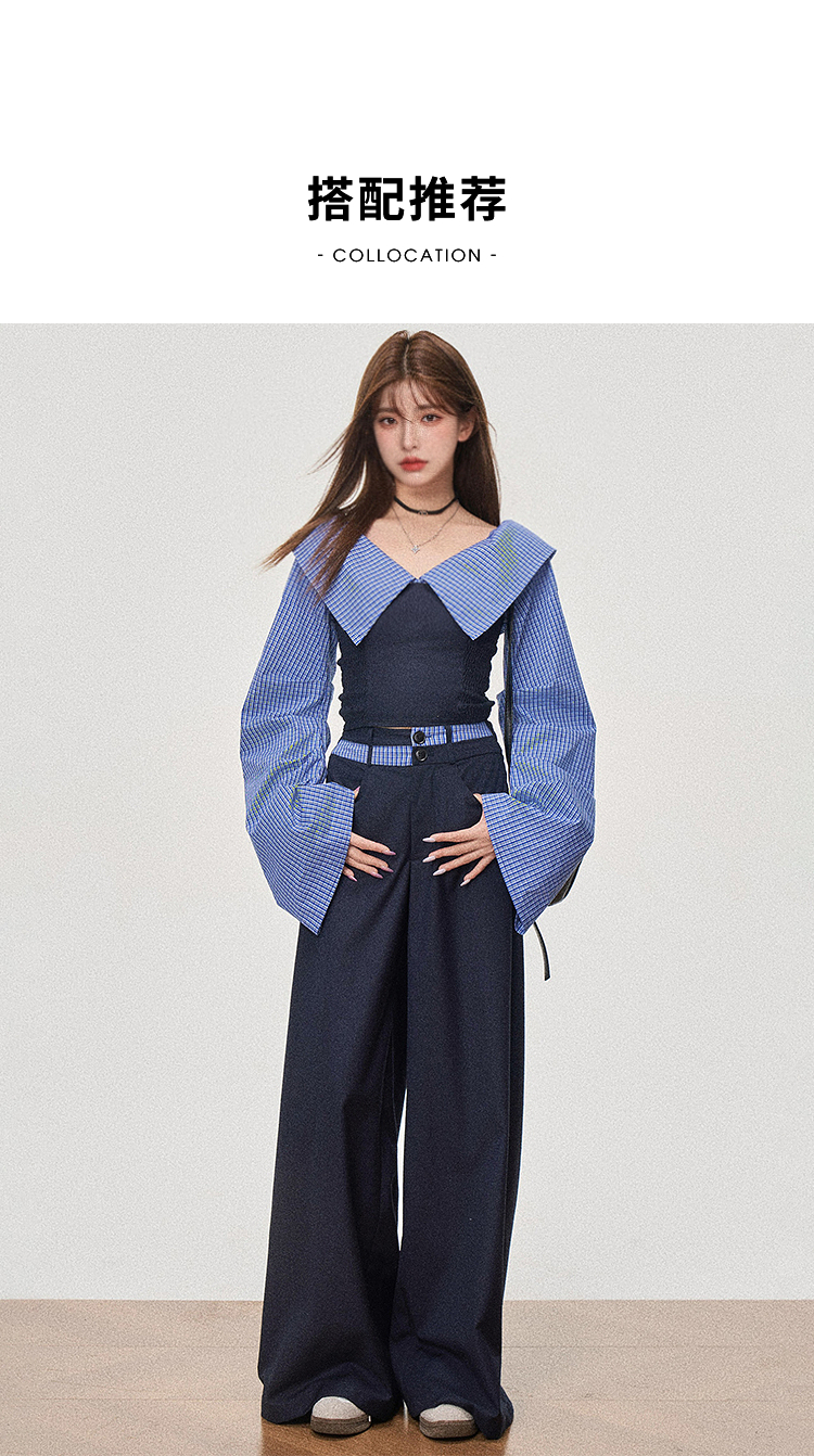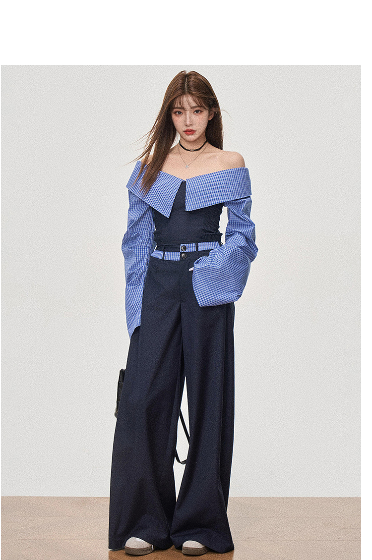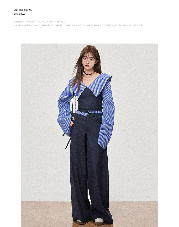 西遇设计感抹胸上衣套装女新款宽松慵懒风阔腿裤两件套SS150089/SS150090