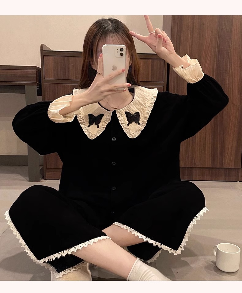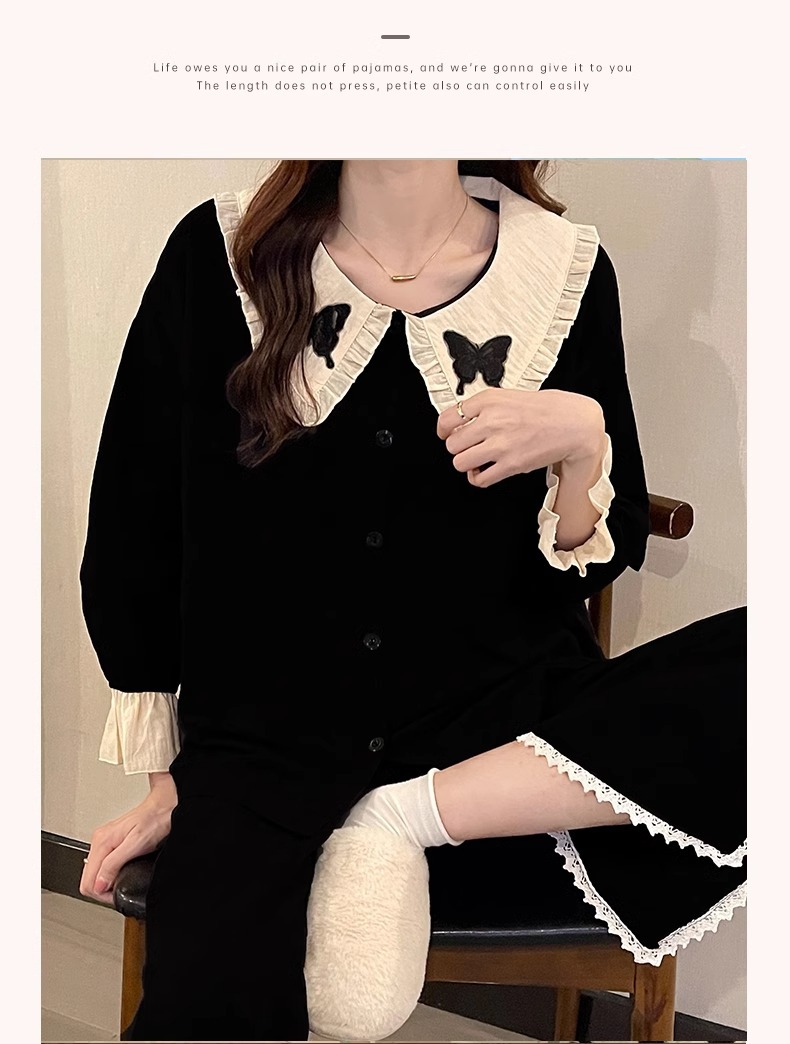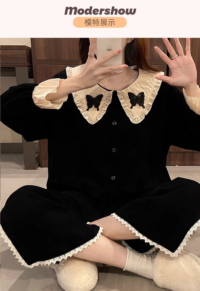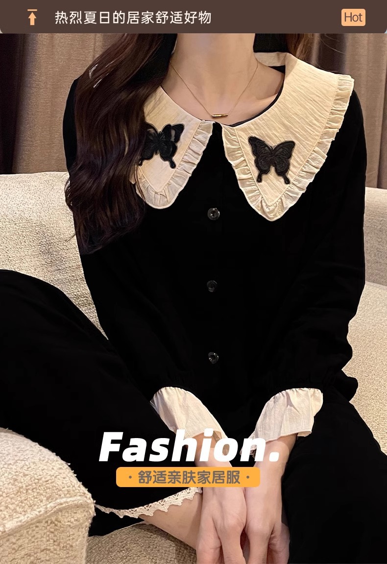 【春秋新款,小仙女必备!】春秋新款黑色长袖家居服套装,舒适面料细腻柔软,甜美少女范儿展现女性柔美之美,韩系ins风格让你散发魅力,在这个季节引爆你的气质与温度,宅在家里也能如花般绽放!