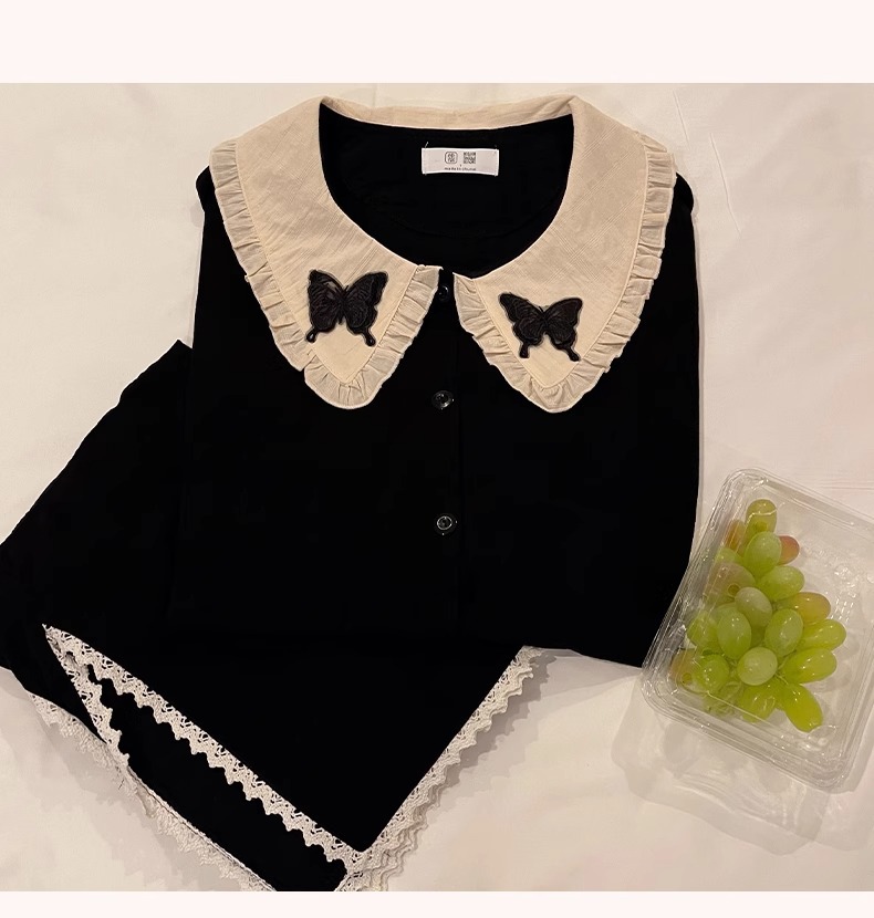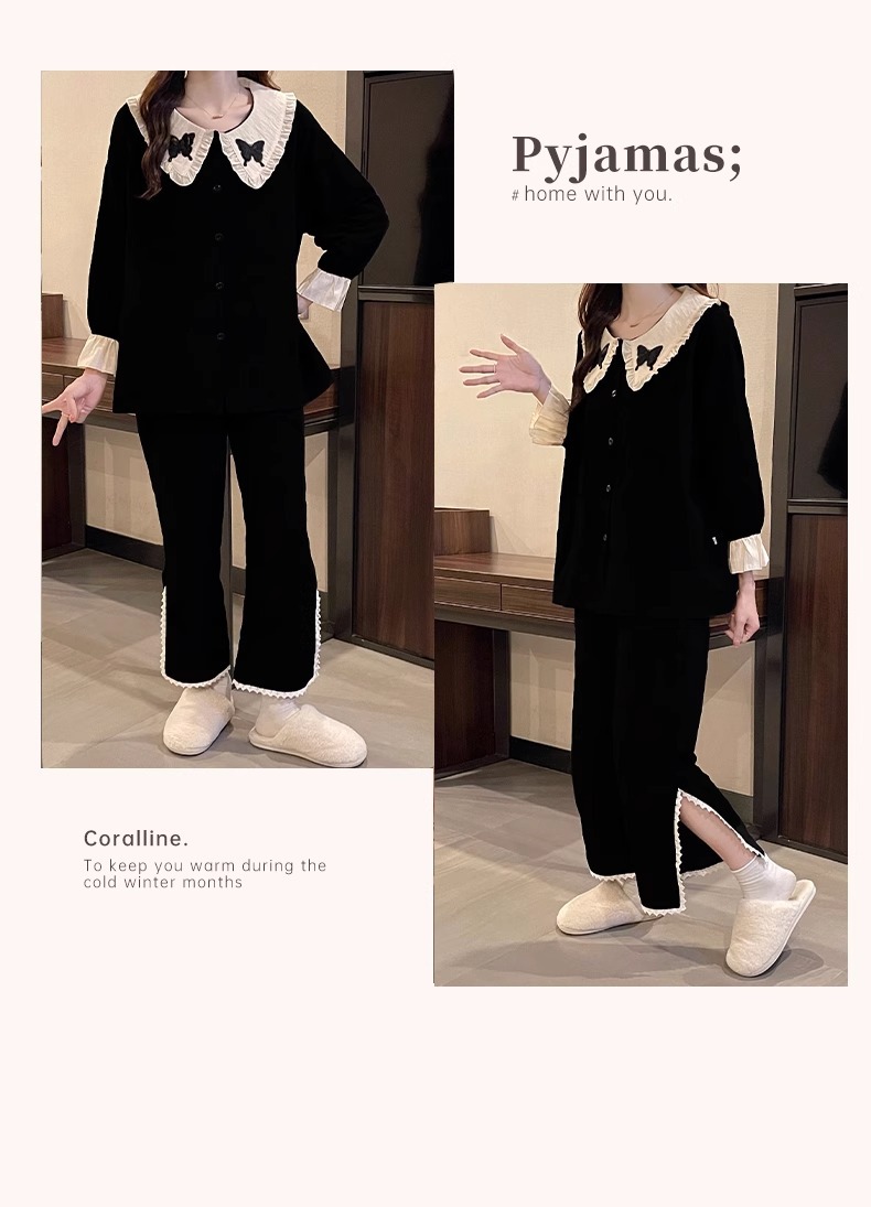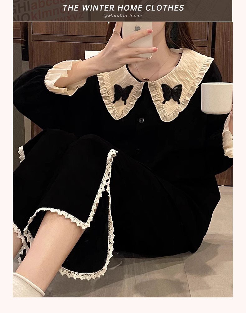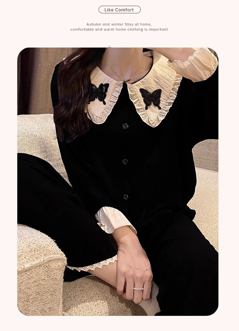 【春秋新款,小仙女必备!】春秋新款黑色长袖家居服套装,舒适面料细腻柔软,甜美少女范儿展现女性柔美之美,韩系ins风格让你散发魅力,在这个季节引爆你的气质与温度,宅在家里也能如花般绽放!