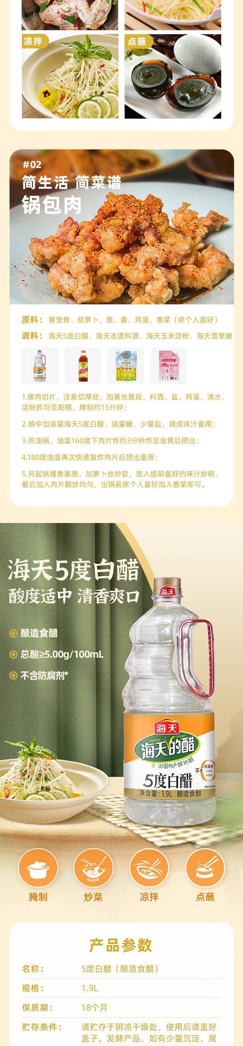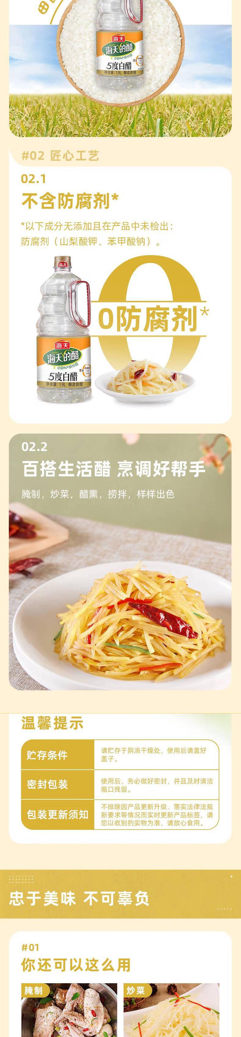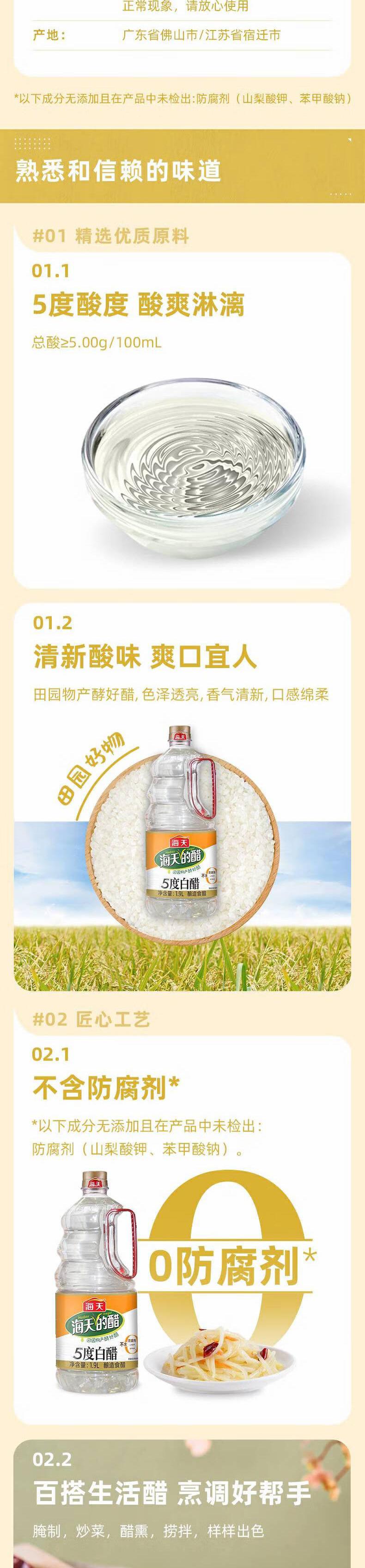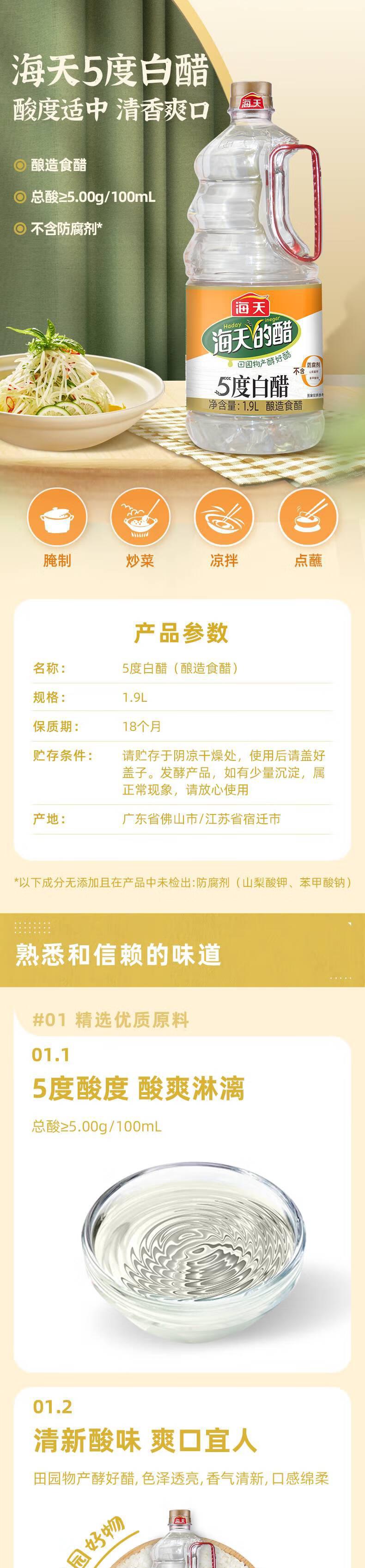 海天 5度白醋1.9L*1瓶陈醋新鲜健康美味 KJDF-20220430-05