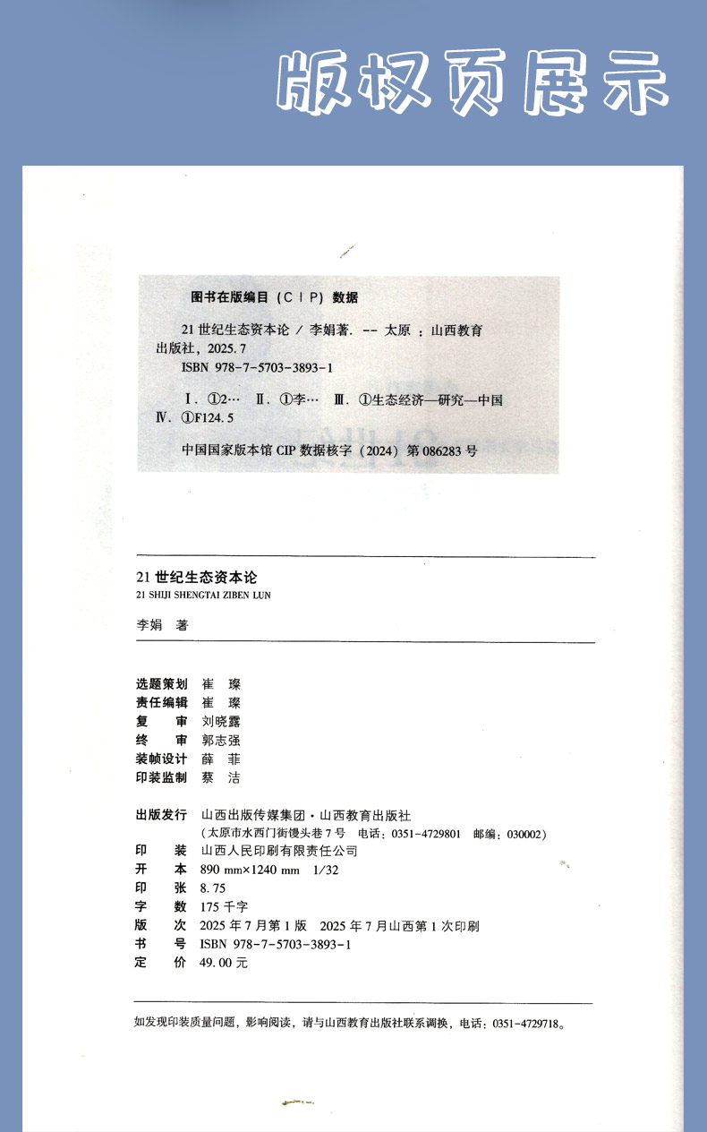 正版 21世纪生态资本论 李娟著 山西教育出版社出版