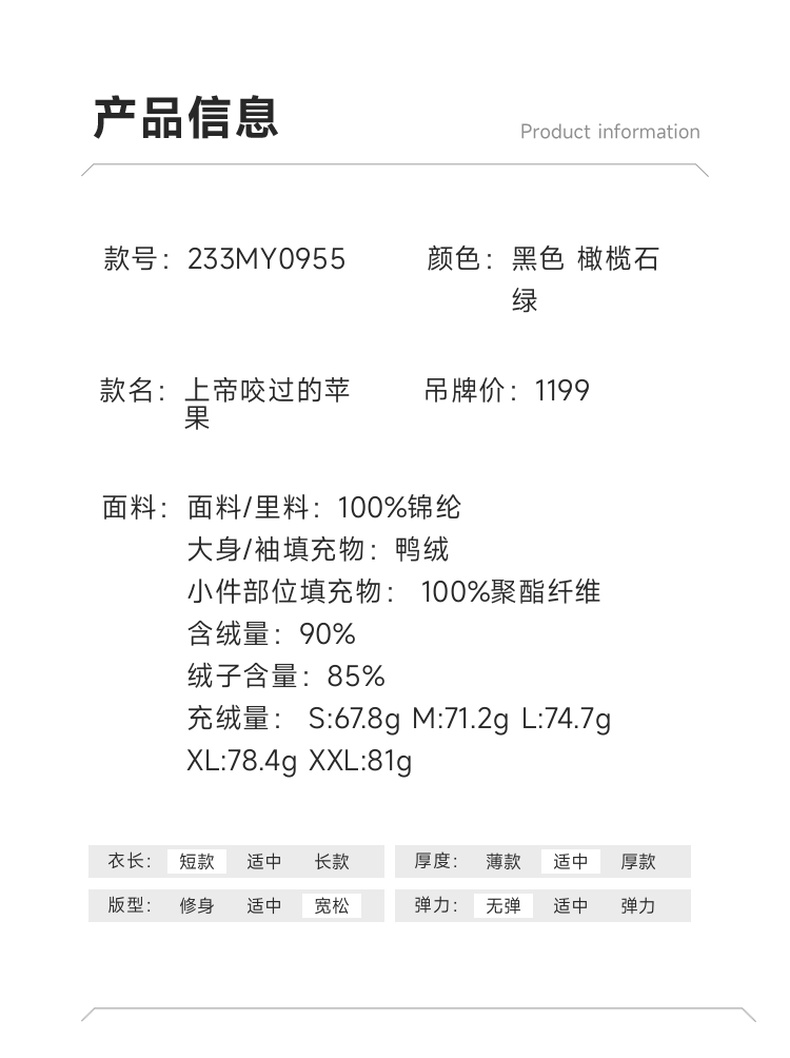 谜底短款羽绒服女2023秋季新款时尚简约两面穿轻薄羽绒233MY0955