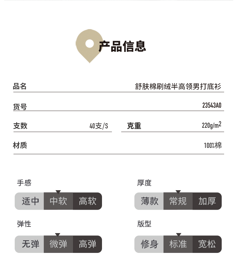 Threegun三枪 【舒肤棉】半高领男士长袖上衣打底衫-23543A011