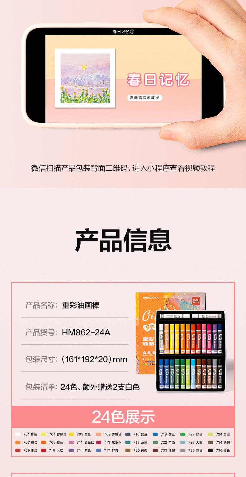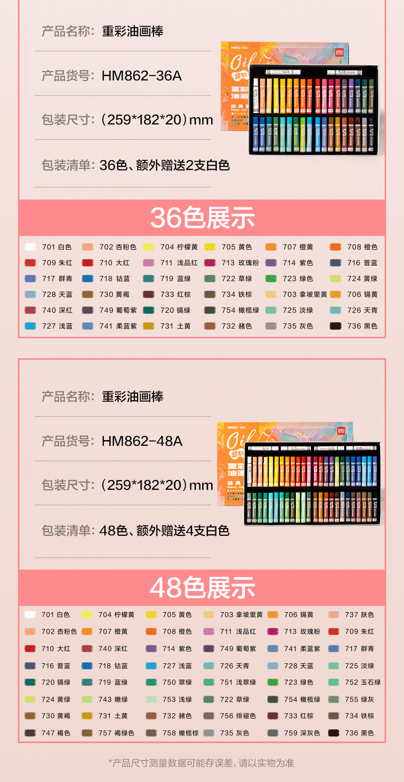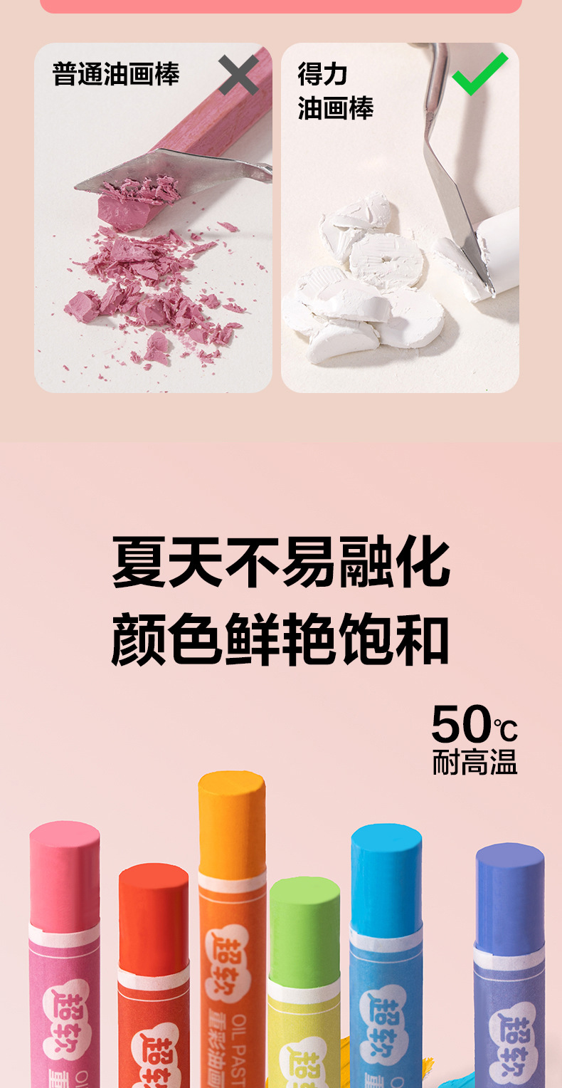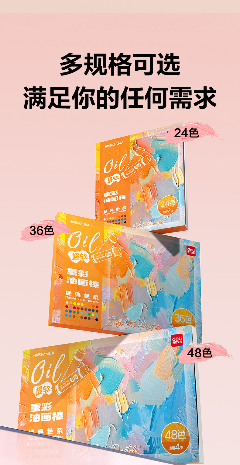 「多款规格」得力重彩油画棒套装软diy炫彩棒小学生用48色安全软性蜡笔文具