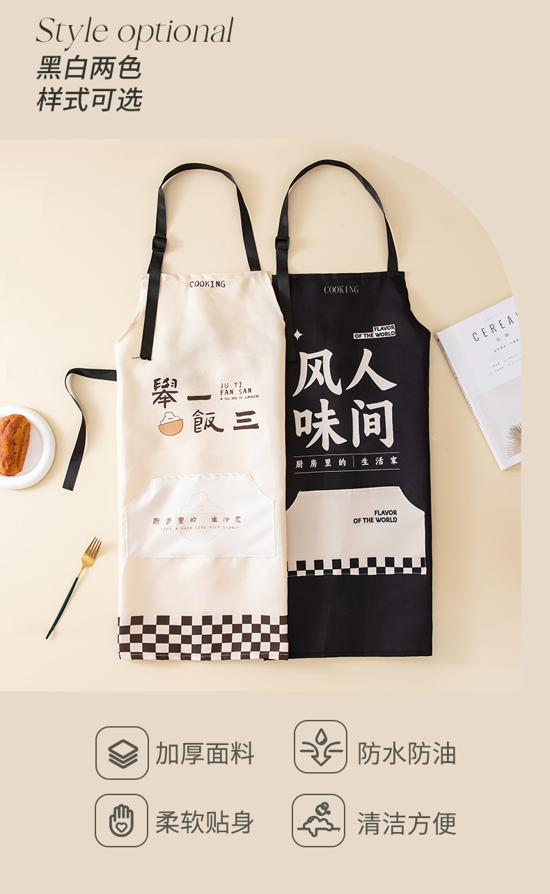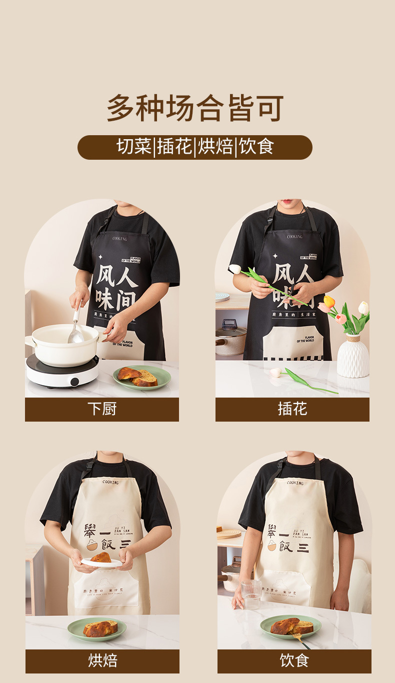 「轻奢风!防水防油款」家用围裙厨房用品做饭防水防油污新款男女围腰成人大口袋时尚清新围裙