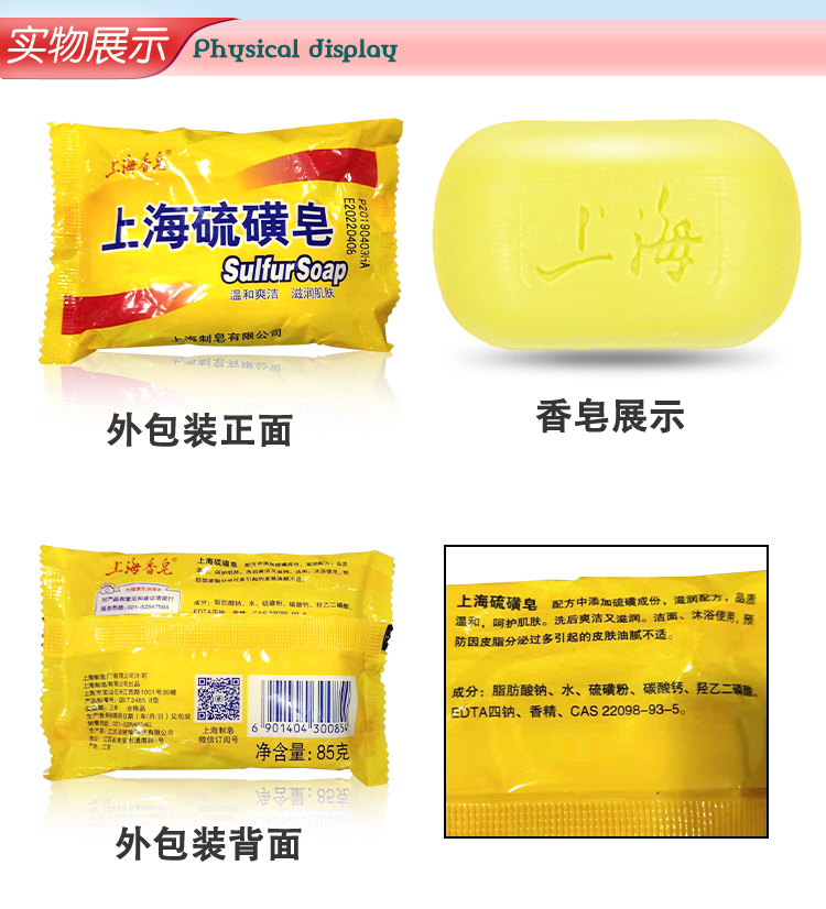 上海硫磺皂洗澡抑菌控油祛痘硫磺香皂去虱子洗头洗脸洁面肥皂85g