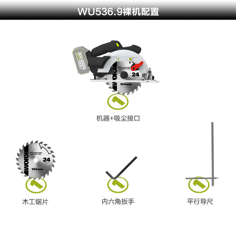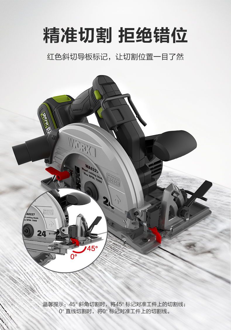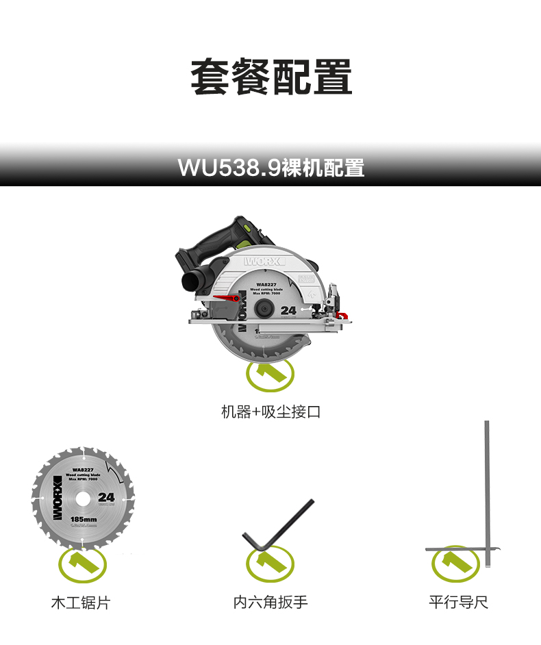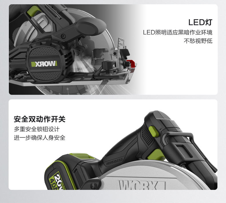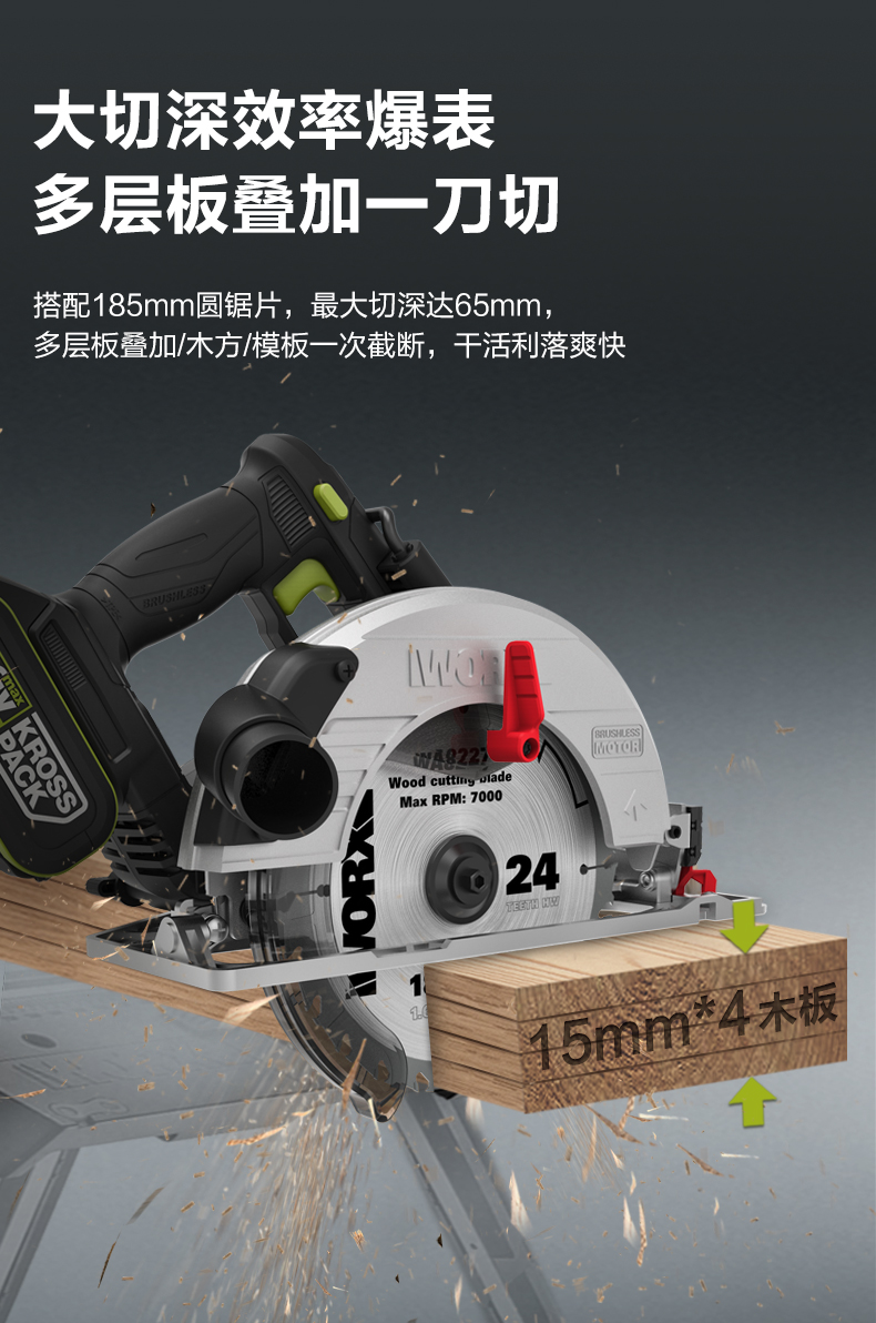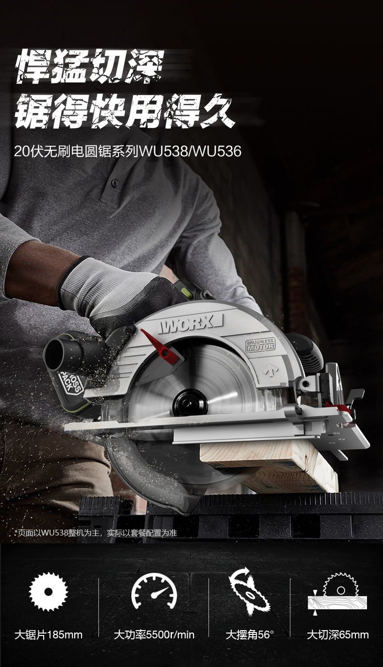 威克士锂电电圆锯WU538无刷电锯圆锯木工专用手提锯圆盘锯切割机WU536