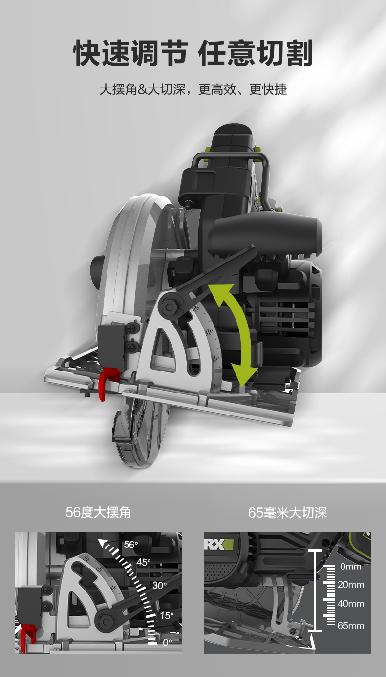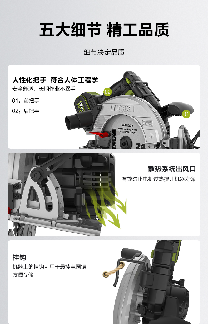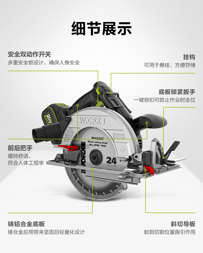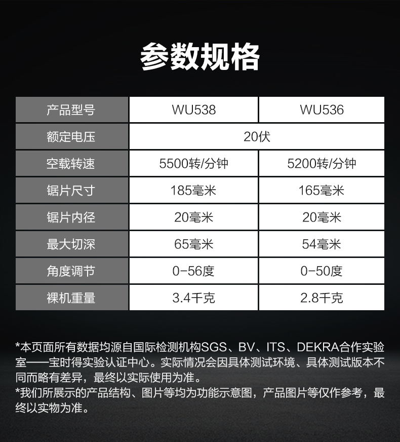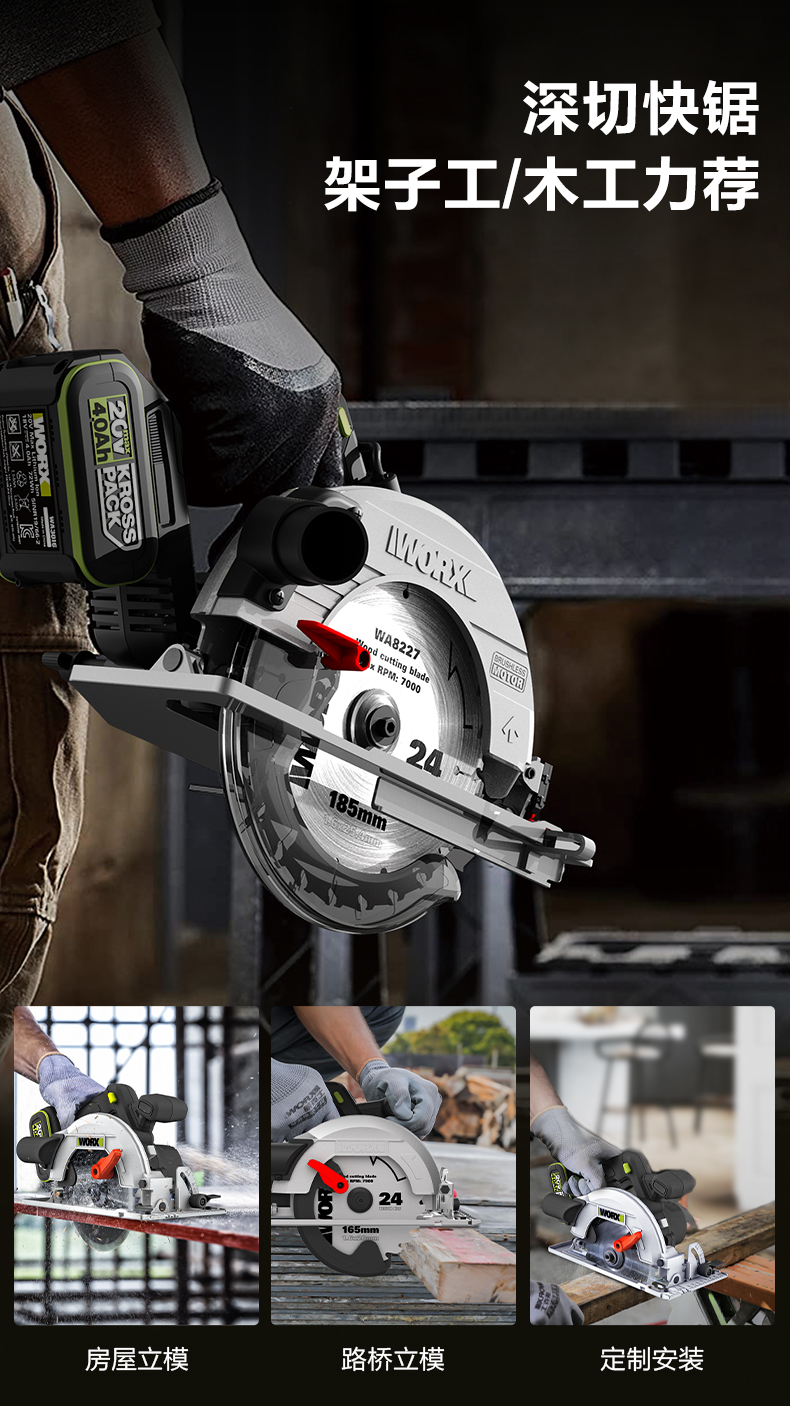 威克士锂电电圆锯WU538无刷电锯圆锯木工专用手提锯圆盘锯切割机WU536