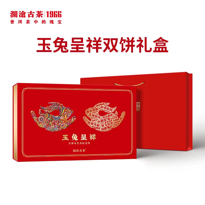【经典普洱生熟组合生肖饼】澜沧古茶 2023年玉兔呈祥 普洱熟茶+生茶组合 礼盒装(京东同款)