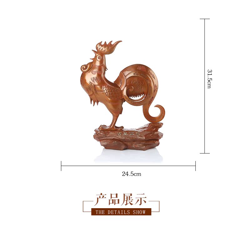 宇达青铜摆件 十二生肖鸡《吉星高照》创意装饰 家居工艺摆件 高31.5cm