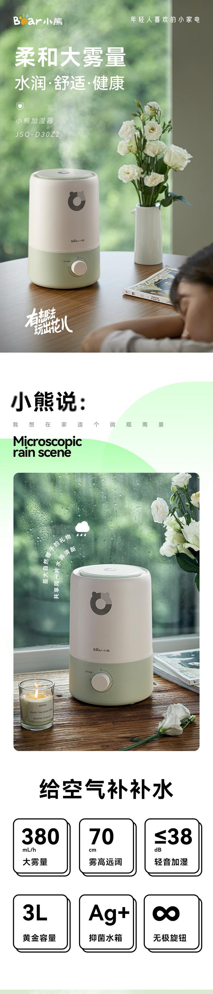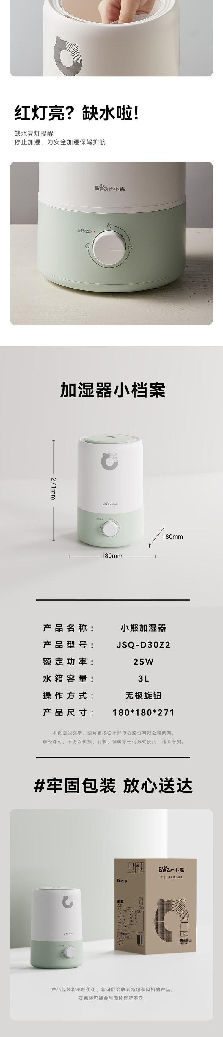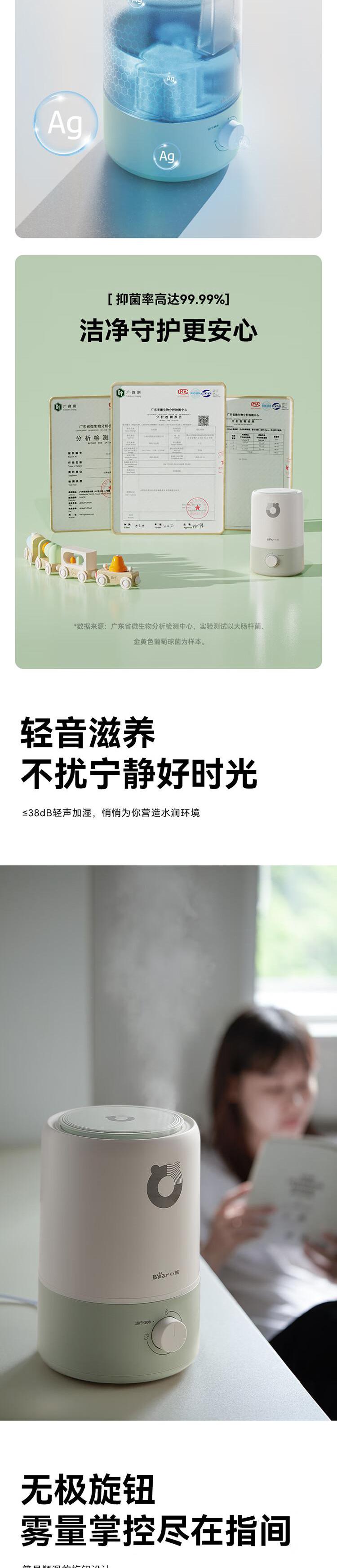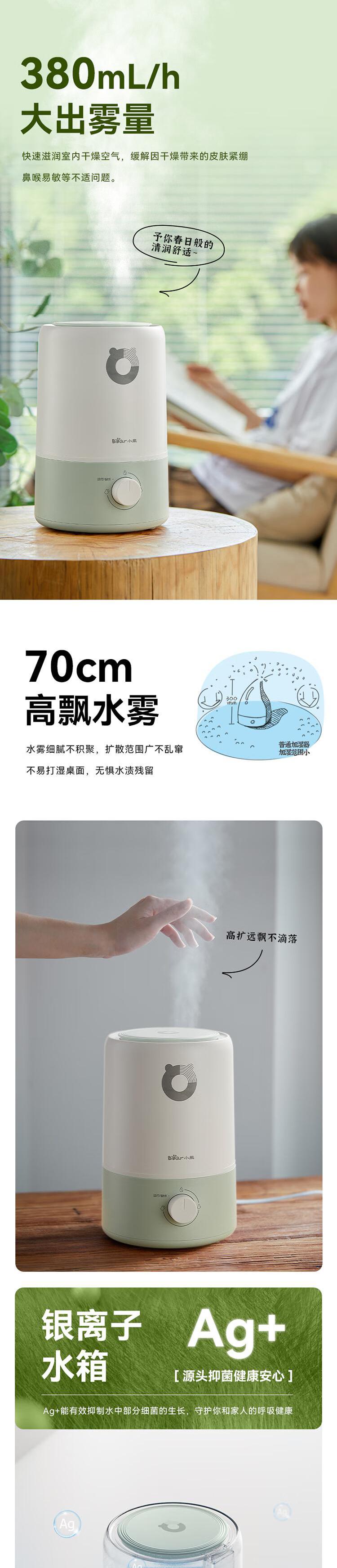 【自营】小熊 加湿器 JSQ-D30Z2大雾量静音滋润上加水防干烧缺水断电