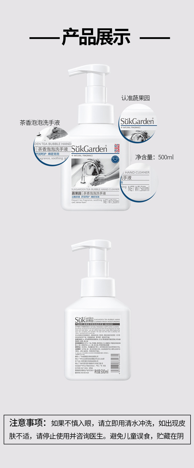 品名:蔬果园茶香泡泡洗手液