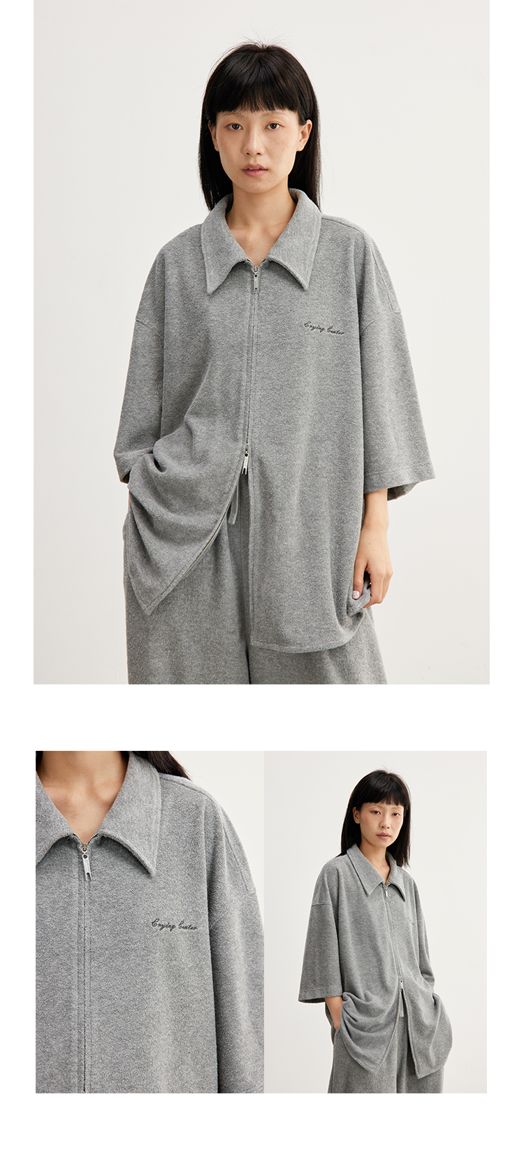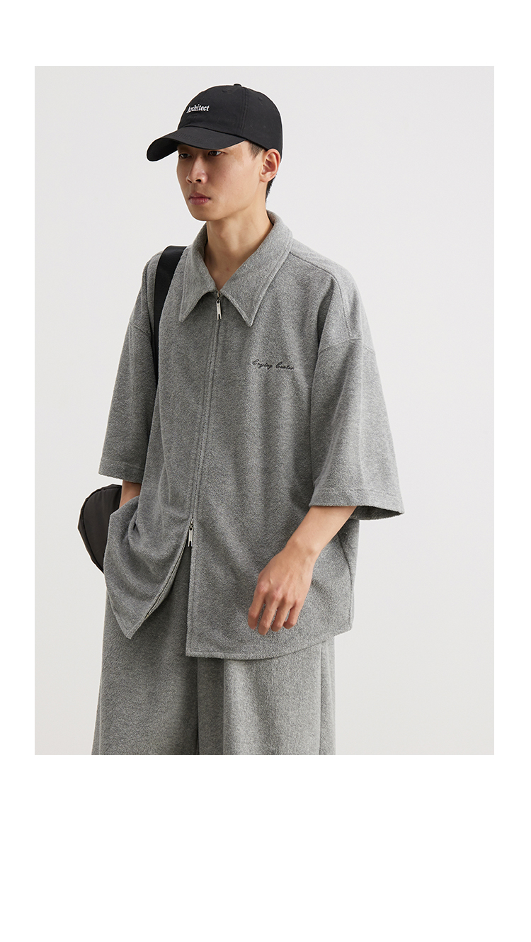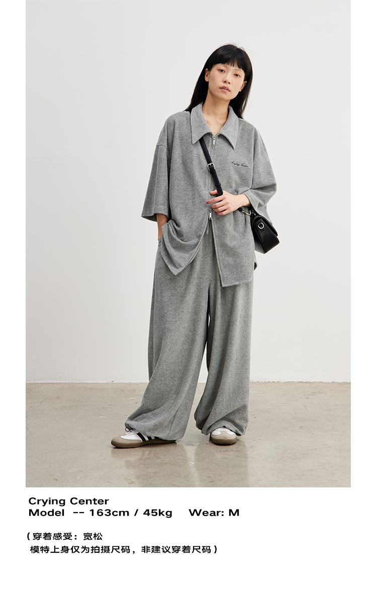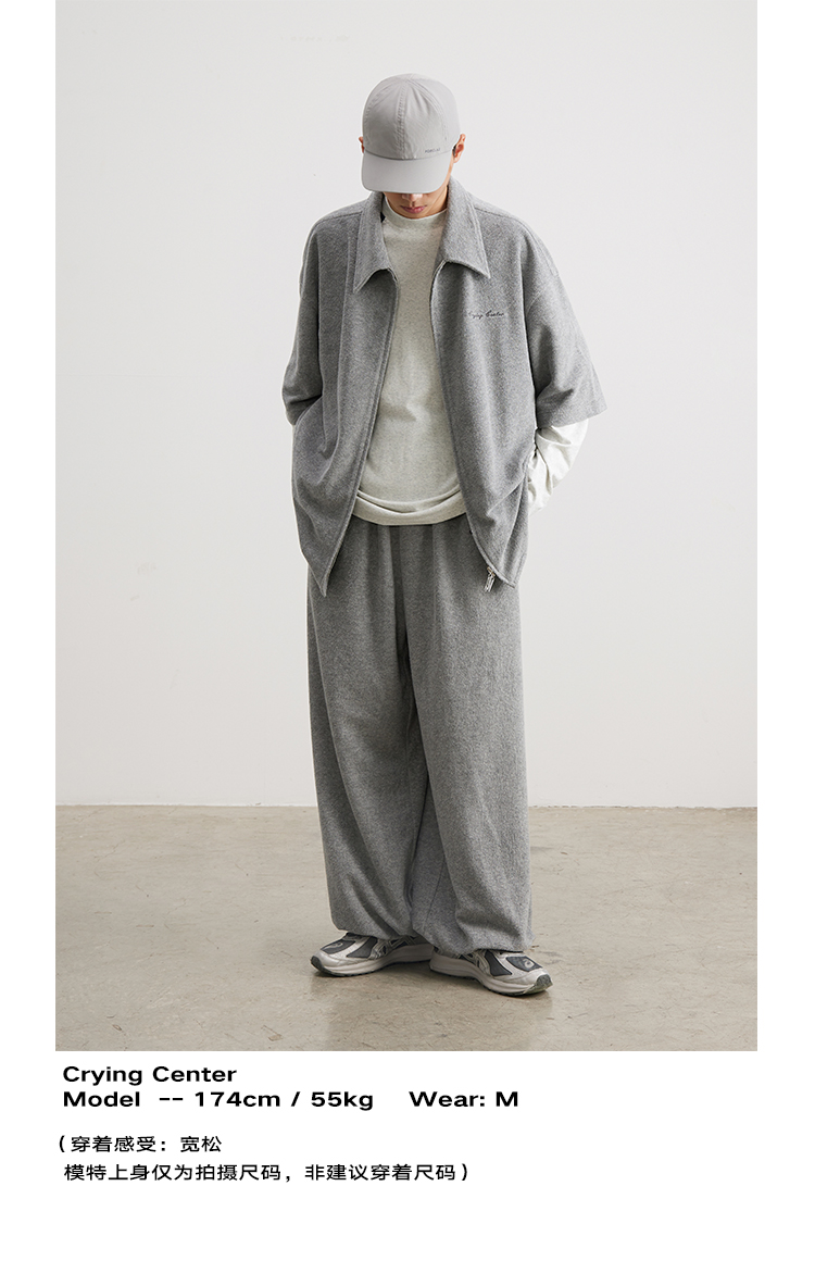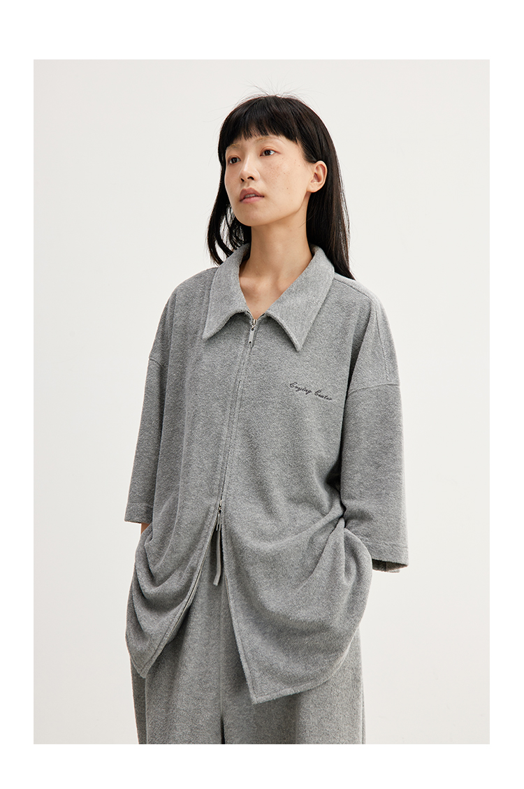 CryingCenter 花灰毛巾慵懒感衬衫拉链开衫 哭喊中心