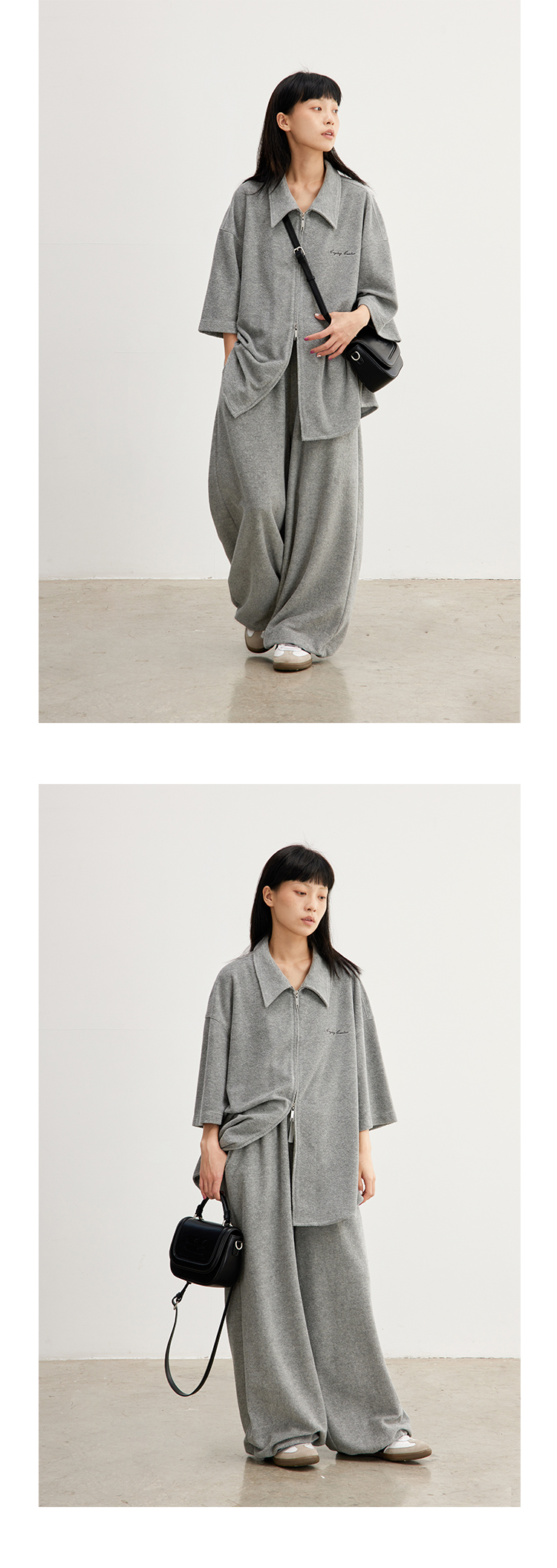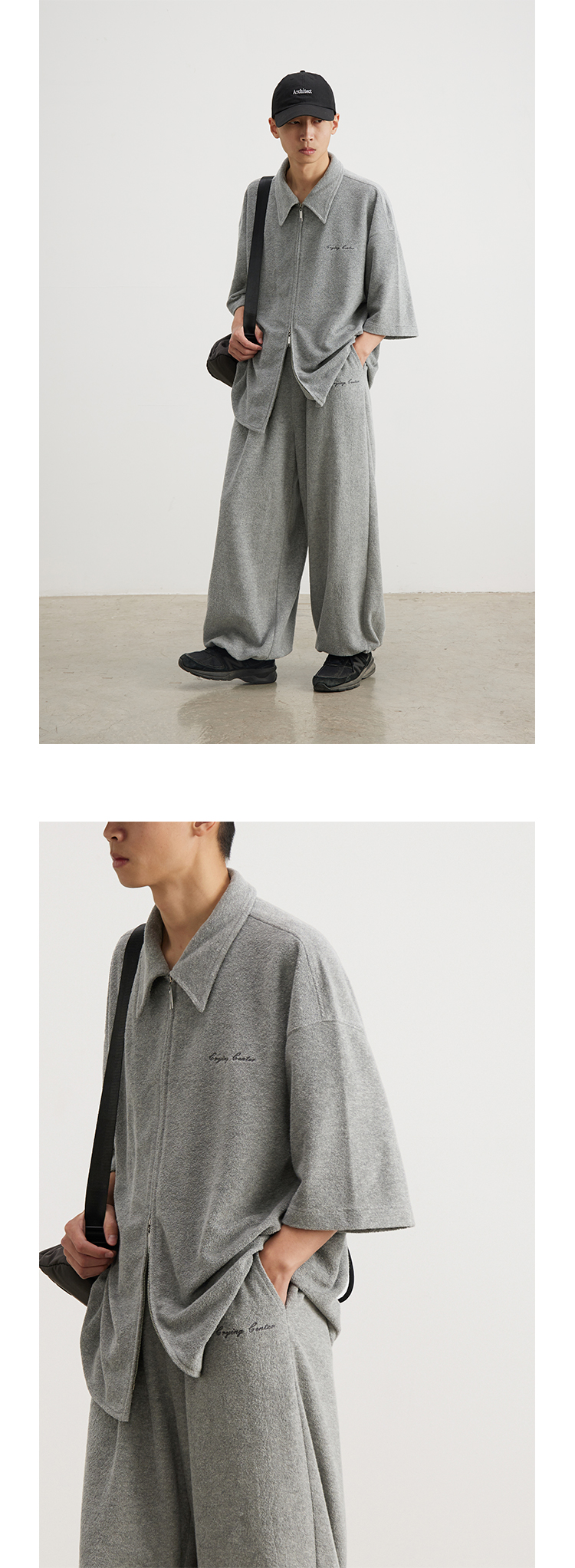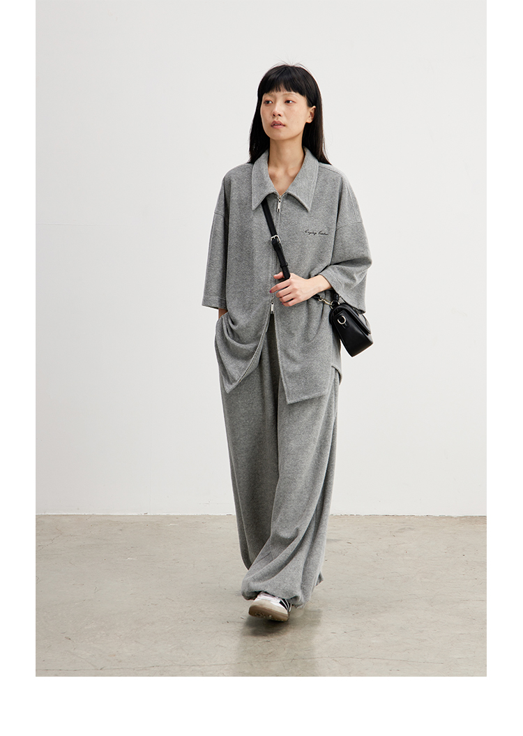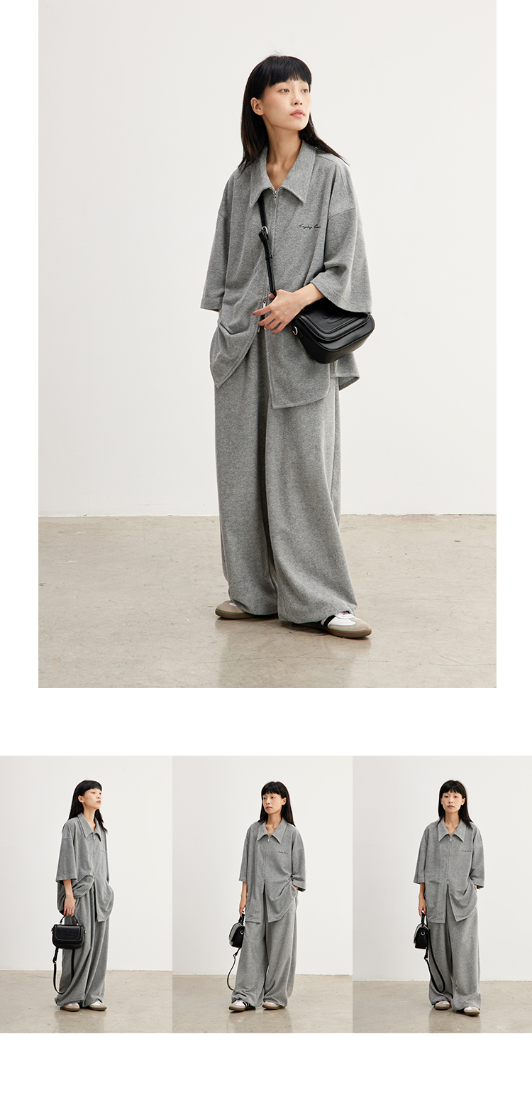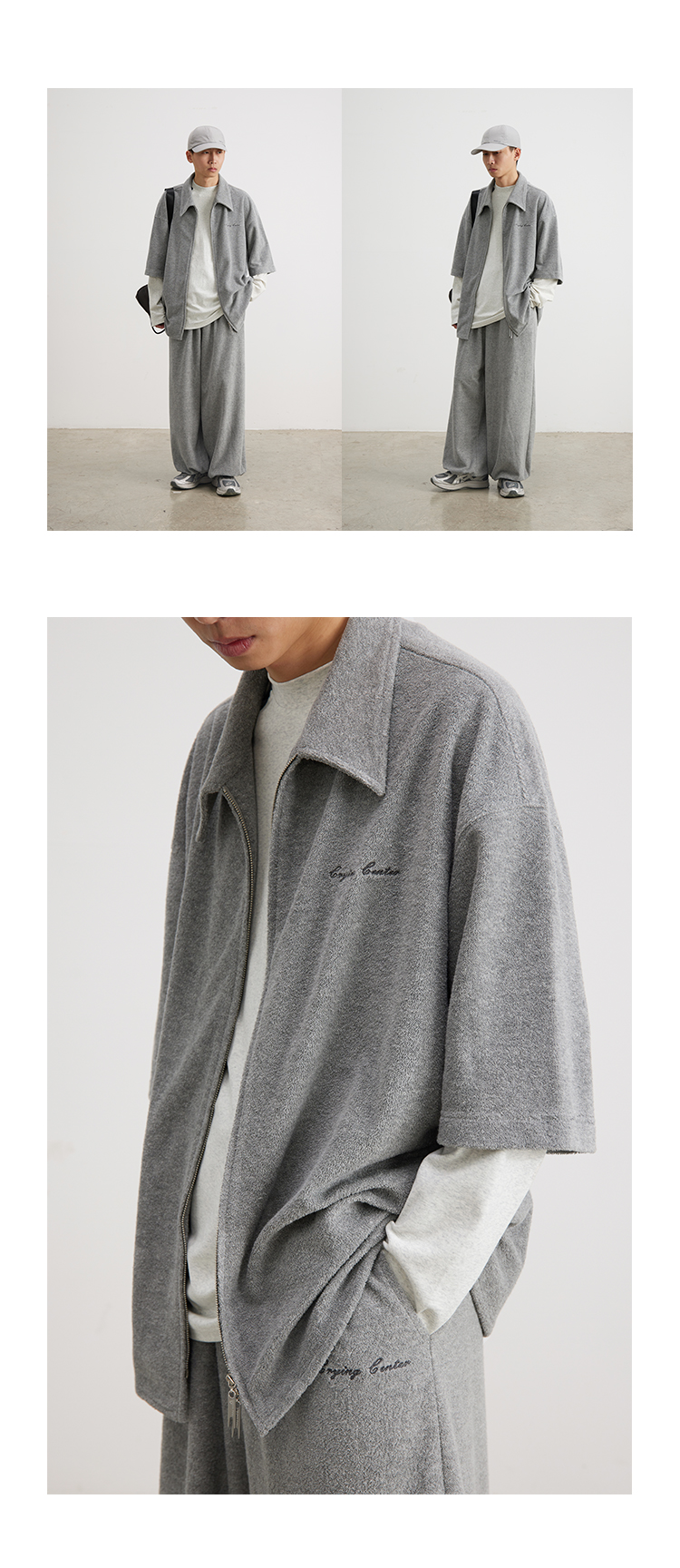 CryingCenter 花灰毛巾慵懒感衬衫拉链开衫 哭喊中心