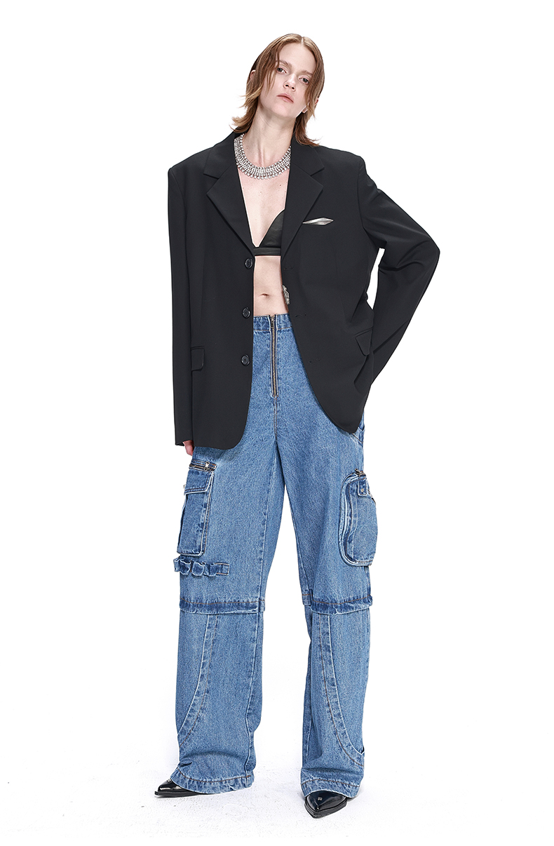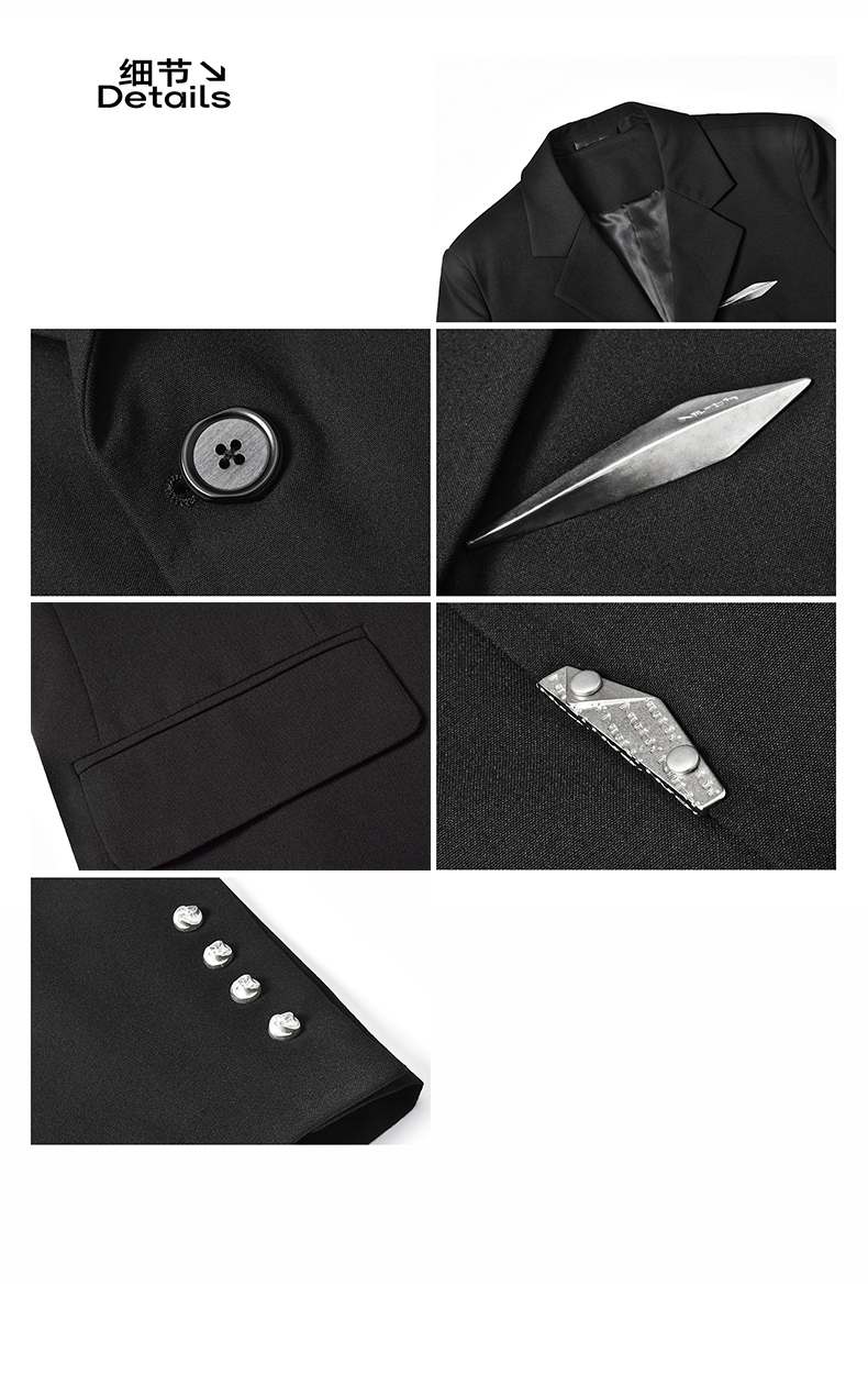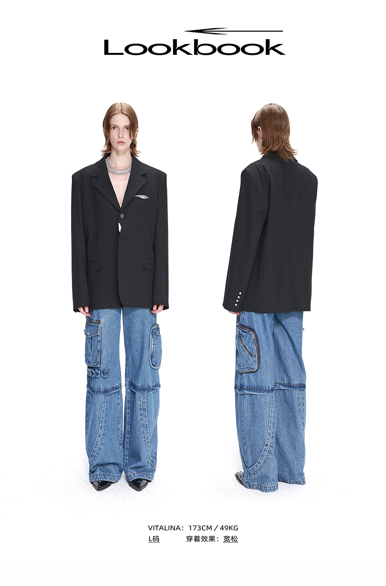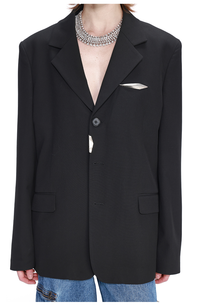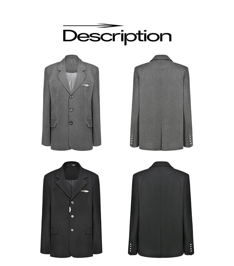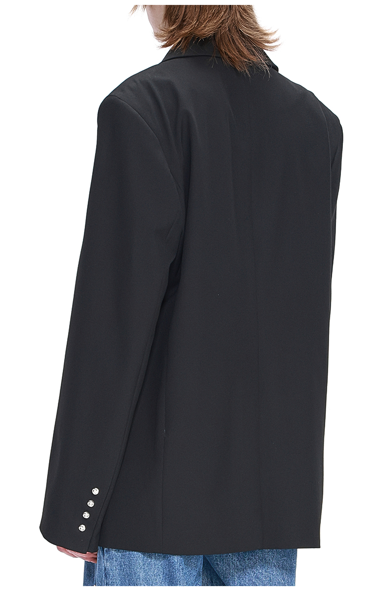 NUTH黑色基础款OVERSIZE百搭西装金属标装饰西服