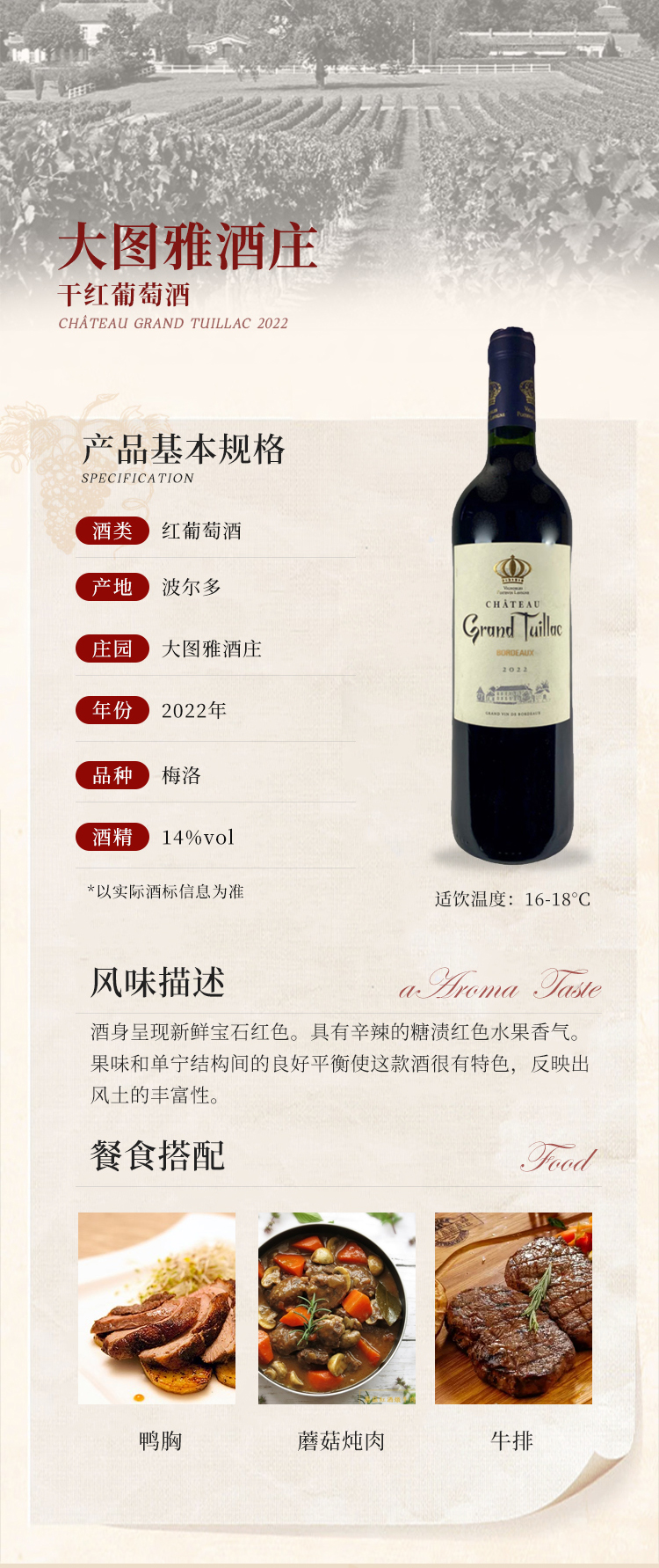 2022 Château Grand Tuillac, Bordeaux, France 波尔多大图雅干红葡萄酒