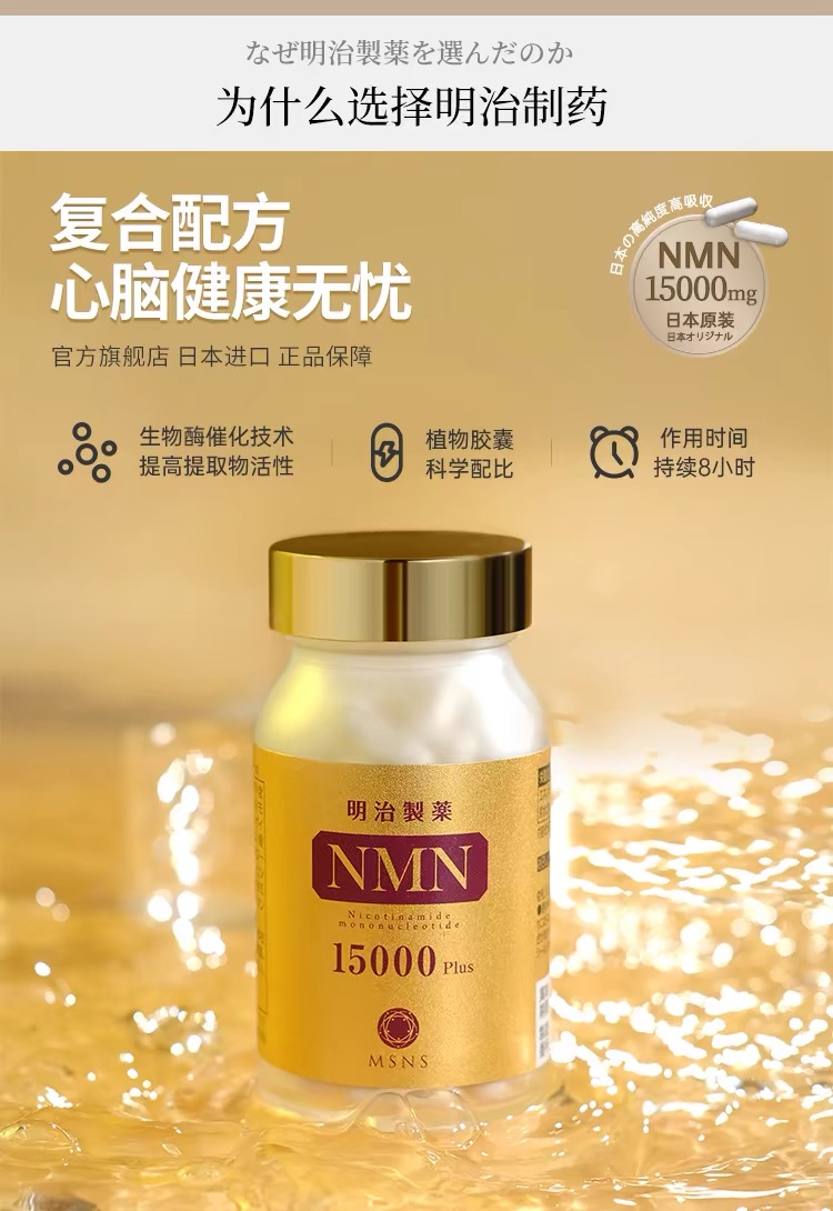 明治制药 15000mgPlus礼盒 NMN·胶囊 90粒/瓶*3瓶(香港直邮,一单仅限拍一瓶,请与其他商品分开下单,需要单独购买)