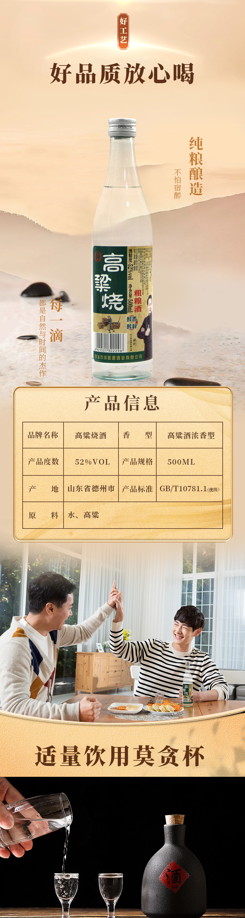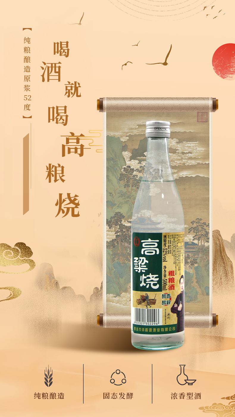 【山东白酒】纯粮酿造固态发酵浓香型酒喝酒就喝高粱烧买6瓶赠6瓶。