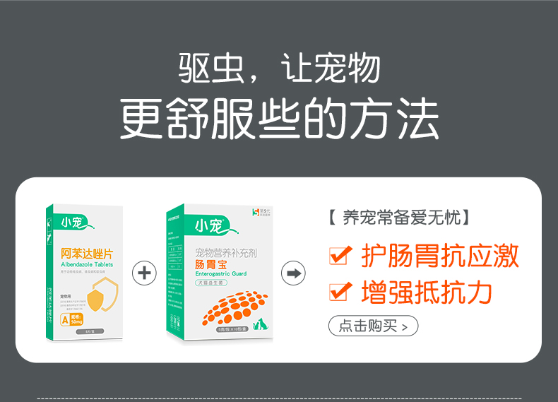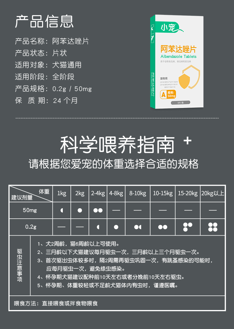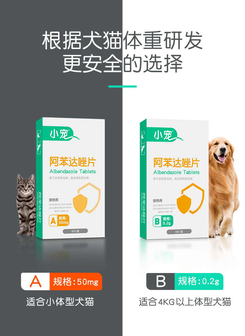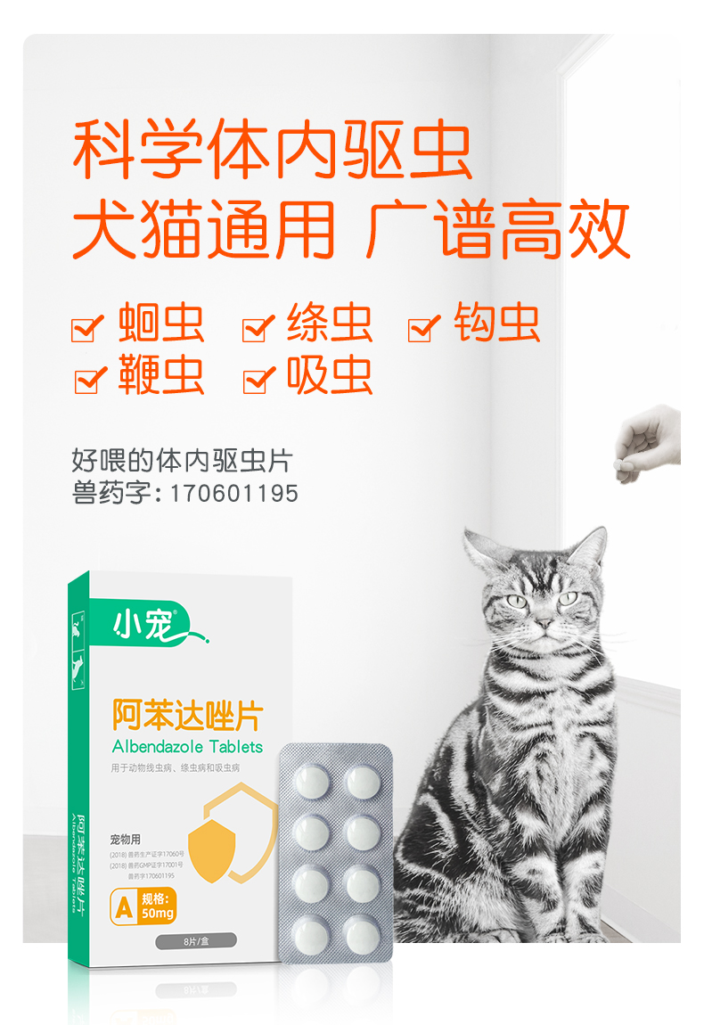 小宠阿苯达唑片50mg*8/盒 体内驱虫 小型犬猫通用