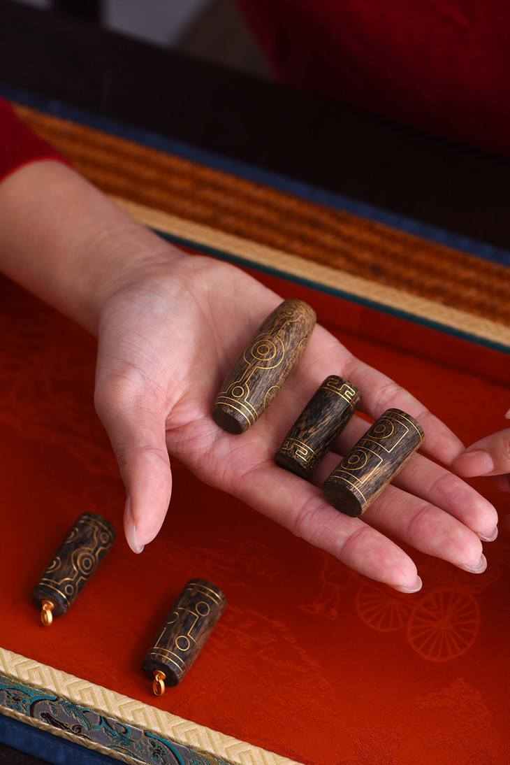 达拉干沉香变幻的油线纹理,是自然鬼斧神工的“天工”;而精准嵌入的错金几何图形,则代表了人类极致的“匠心”。