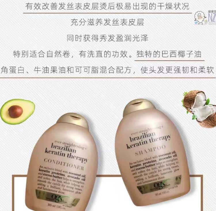 【保税仓】OGX蔻姬丝巴西角蛋白顺滑洗发水385ml