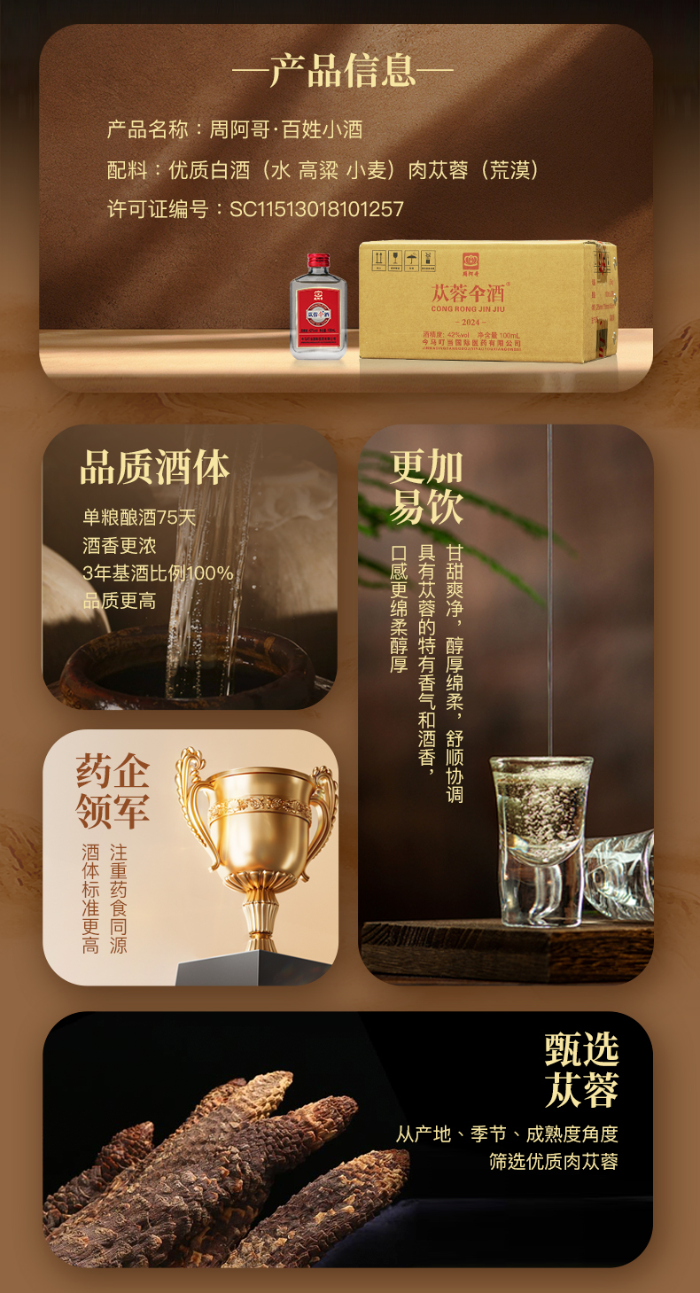 优选丨周歌 苁蓉小酒42度 100ml 周歌水滴瓶38度/42度/52度 (礼盒装)475ml 白酒