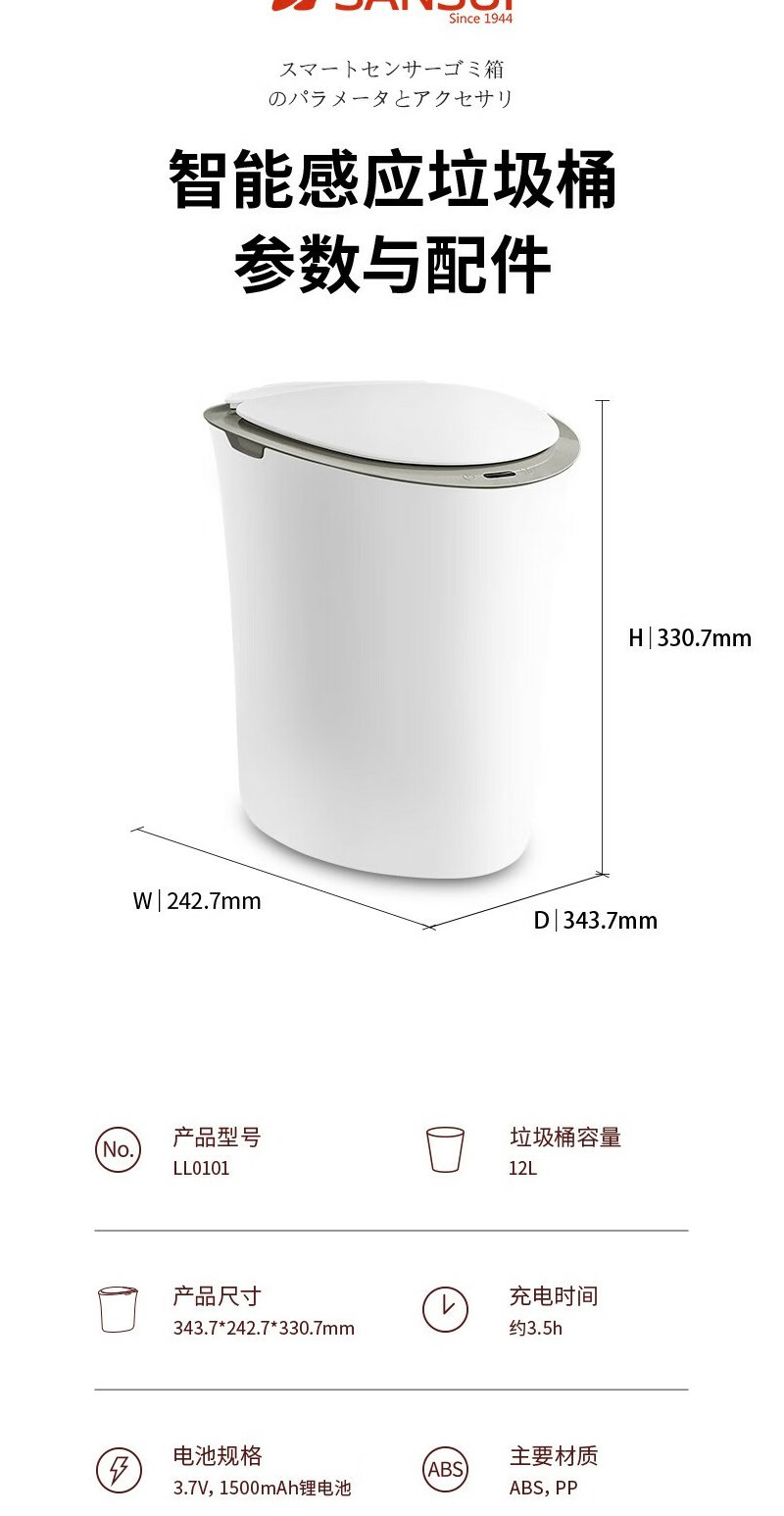 山水(SANSUI)食物处理机智能垃圾桶 白色