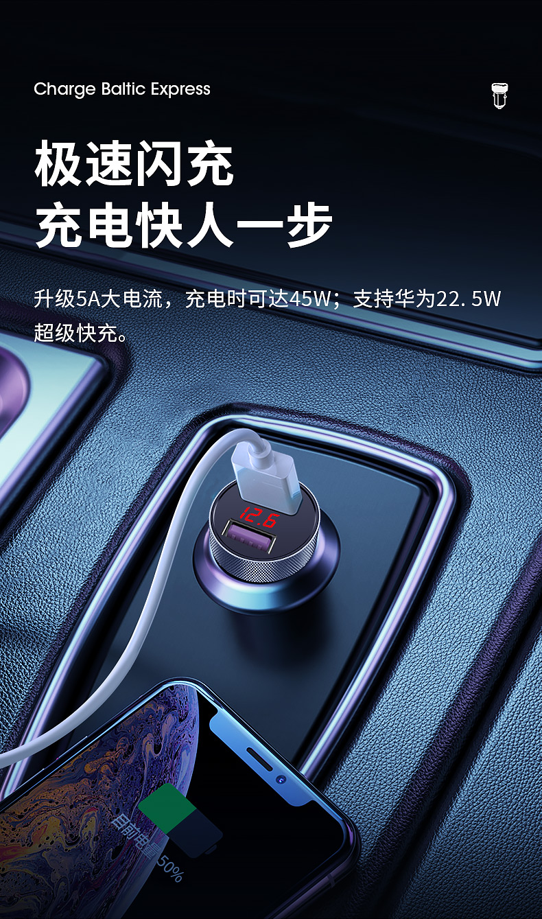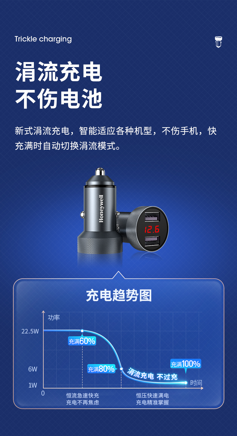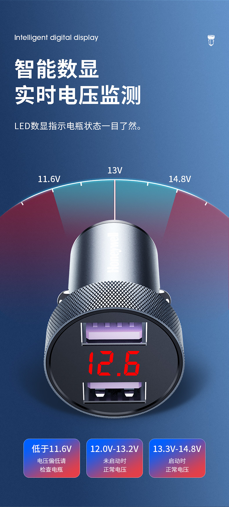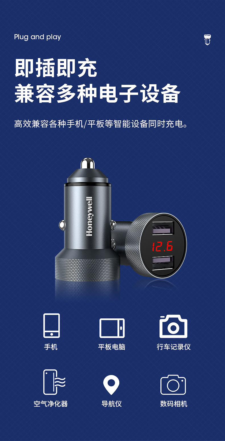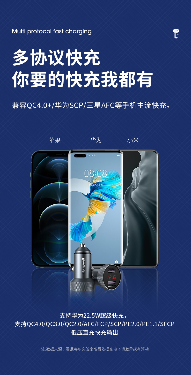 霍尼韦尔 车载充电器45W快充充电器双口USB一拖二点烟器通用苹果华为小米手机平板