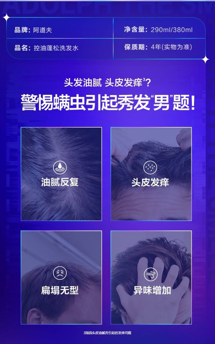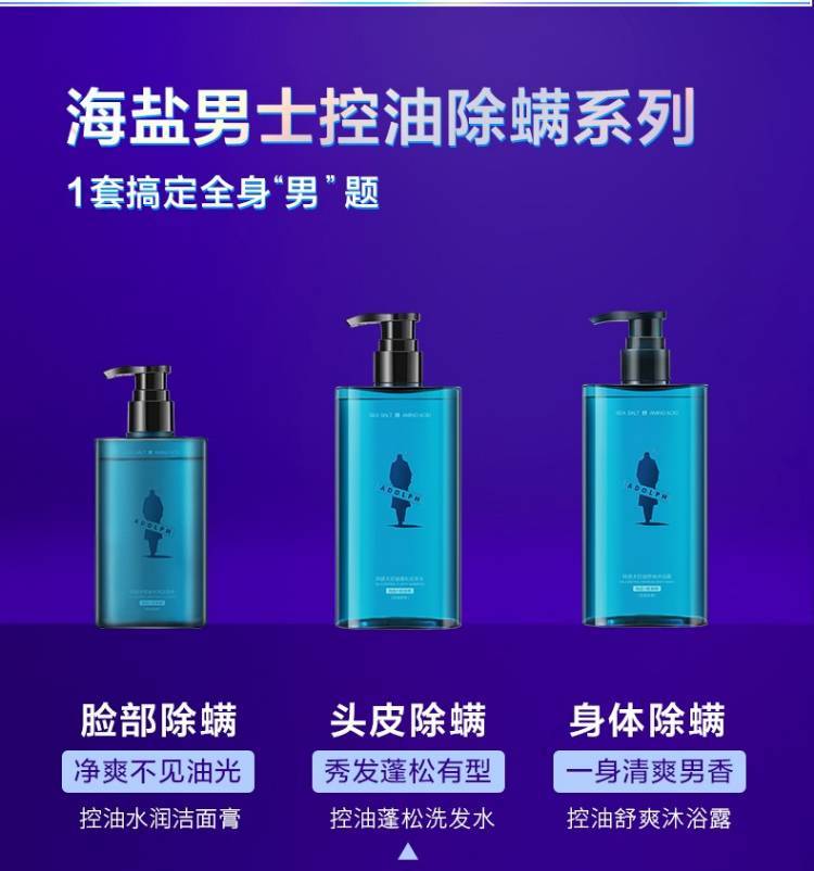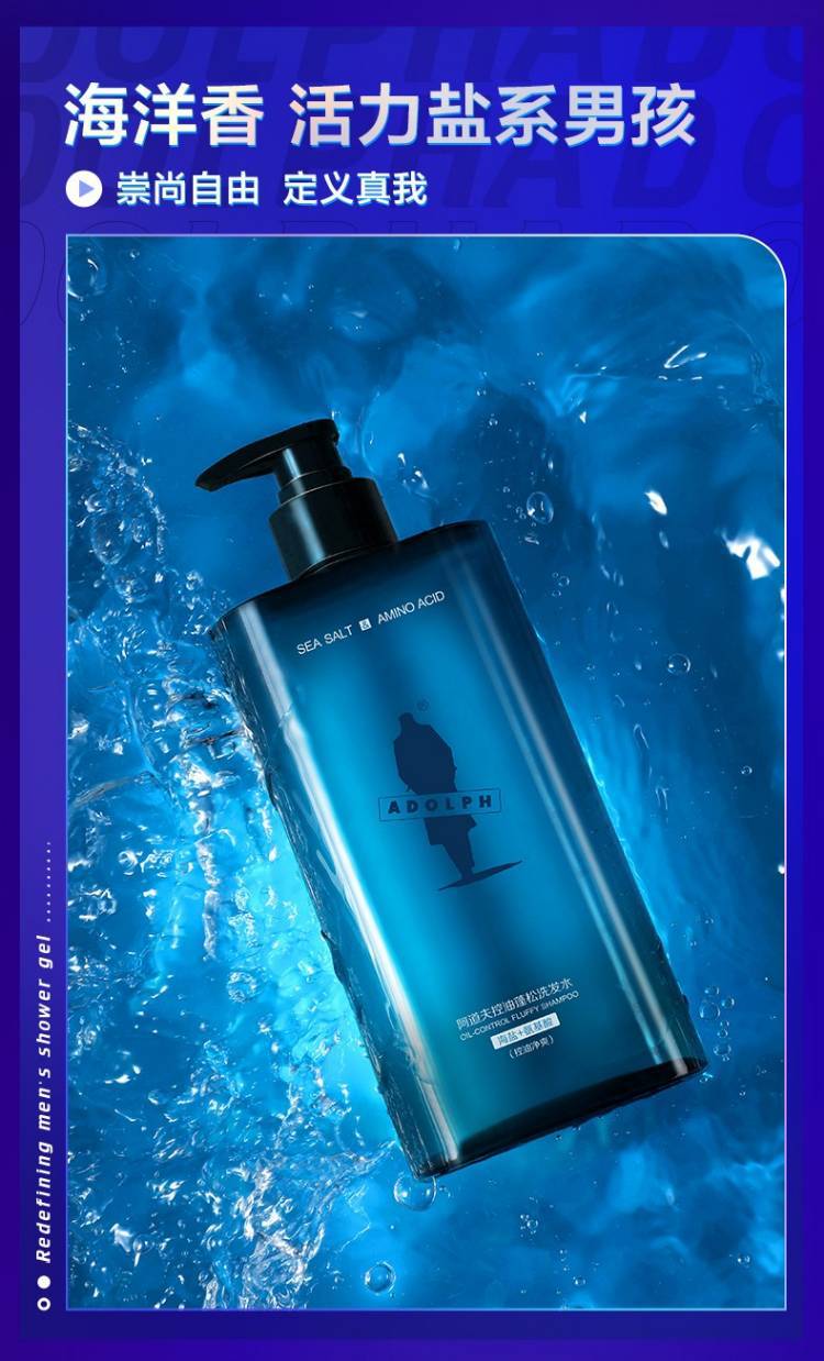 阿道夫男士海盐洗发水(控油蓬松)清爽洗头膏290ml