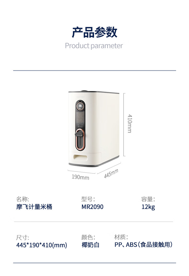 摩飞 米桶 智能家用防虫防潮密封储米箱12公斤 MR2090