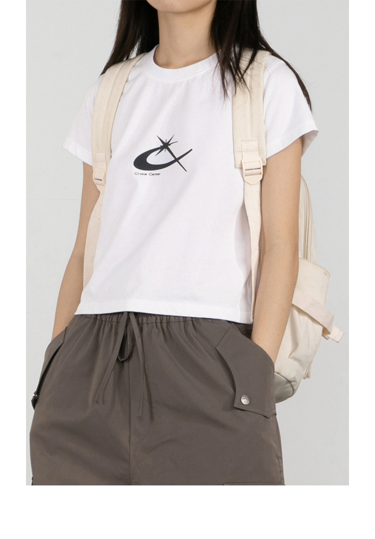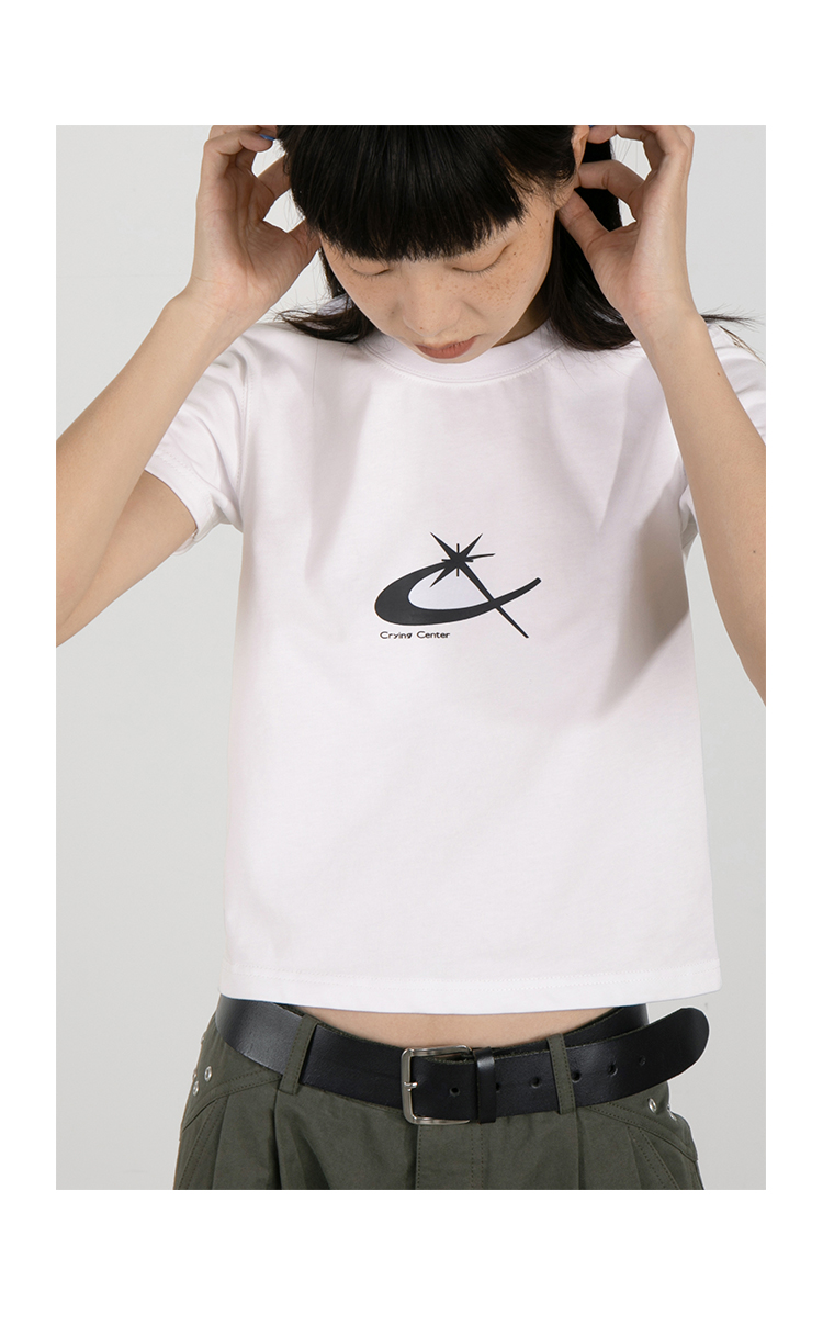 CryingCenter 白色星月 紧身短款上衣T恤短袖 哭喊中心