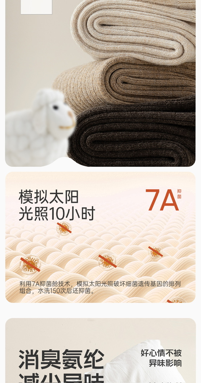 绵软羊毛,亲肤保暖,透气干爽 7A抗菌防臭,脱鞋尴尬不再有