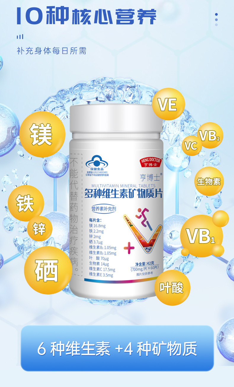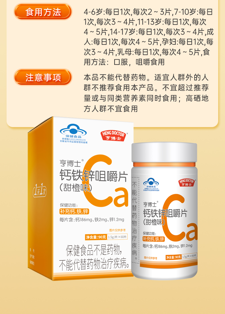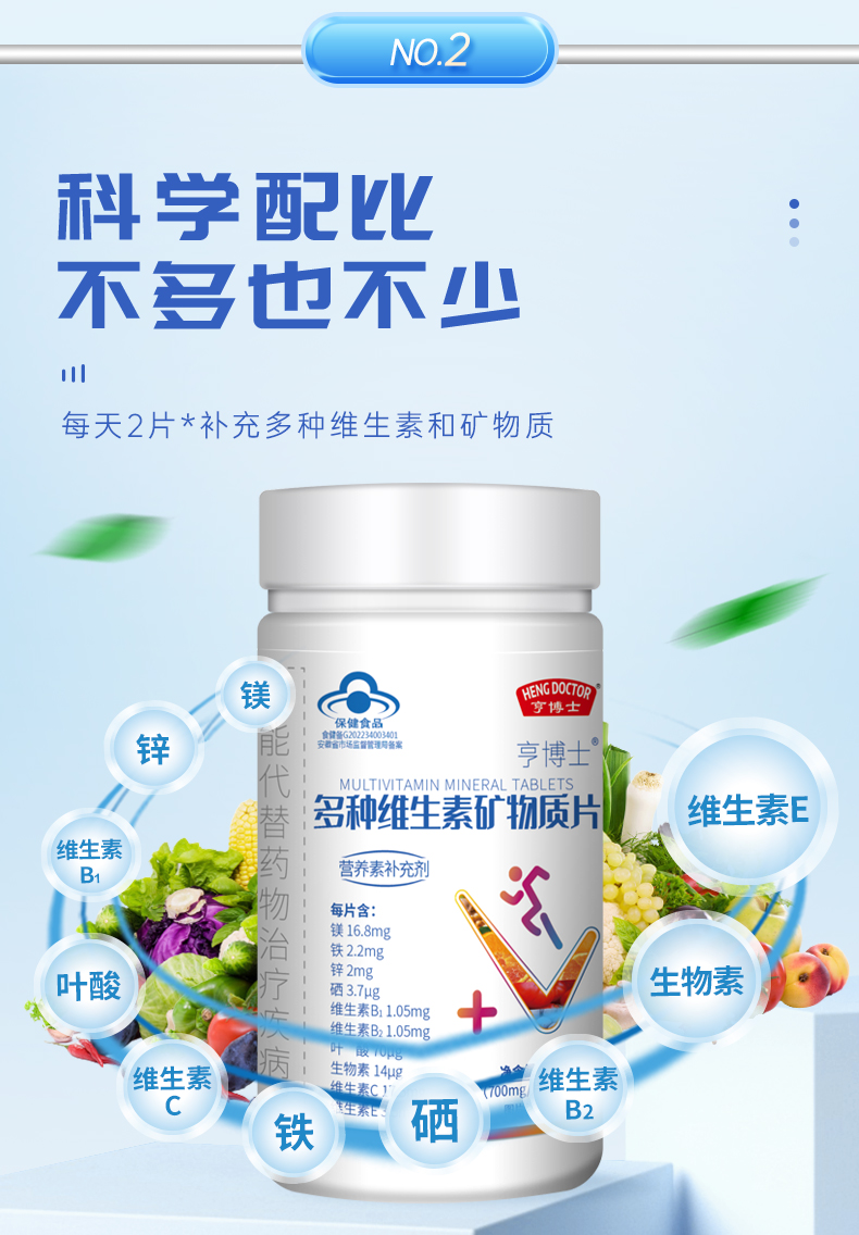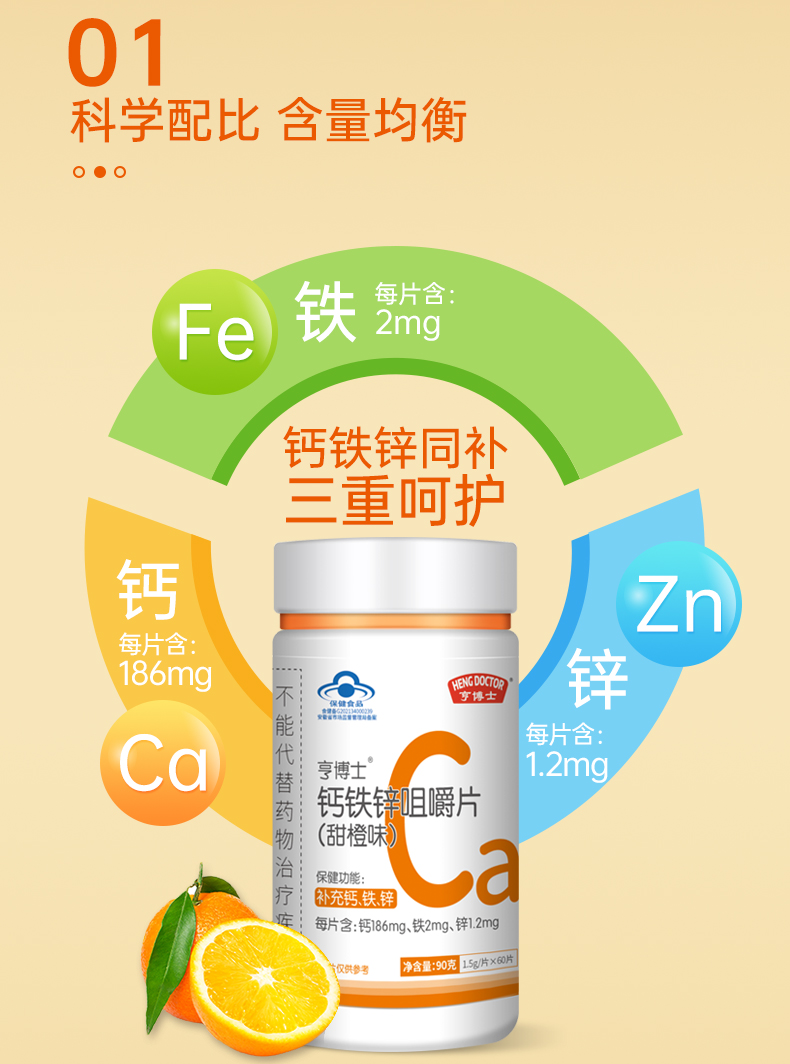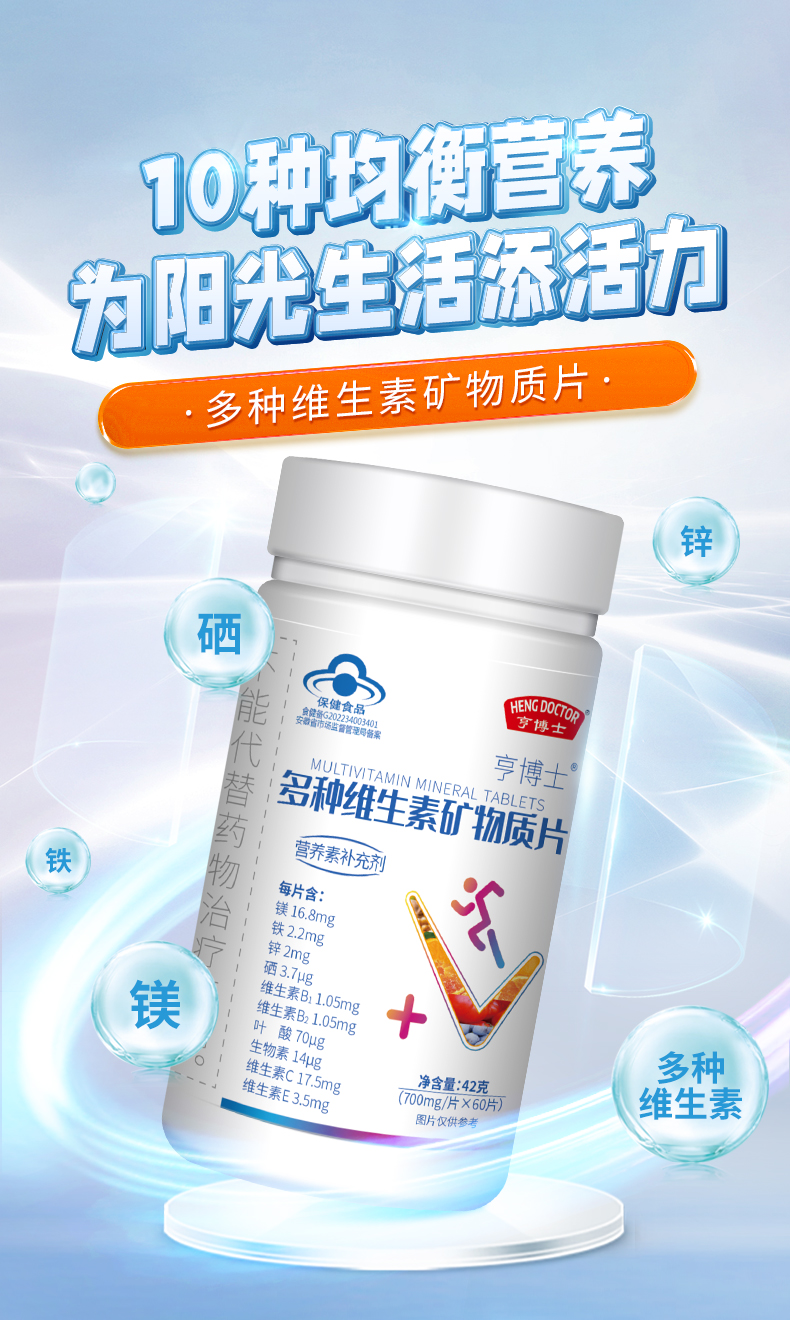 优选丨亨博士钙铁锌多种维生素酵母片/锌硒片补充每天所需能量