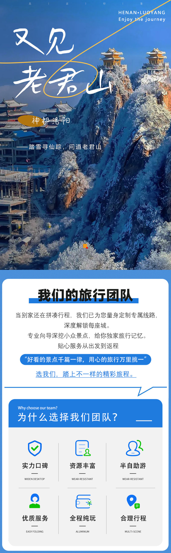 2)门票:老君山门票+中灵往返索道团体220元(门市230元),龙门石窟90元,白马寺门票35元(门票价格供参考,以景区实际政策为准)。