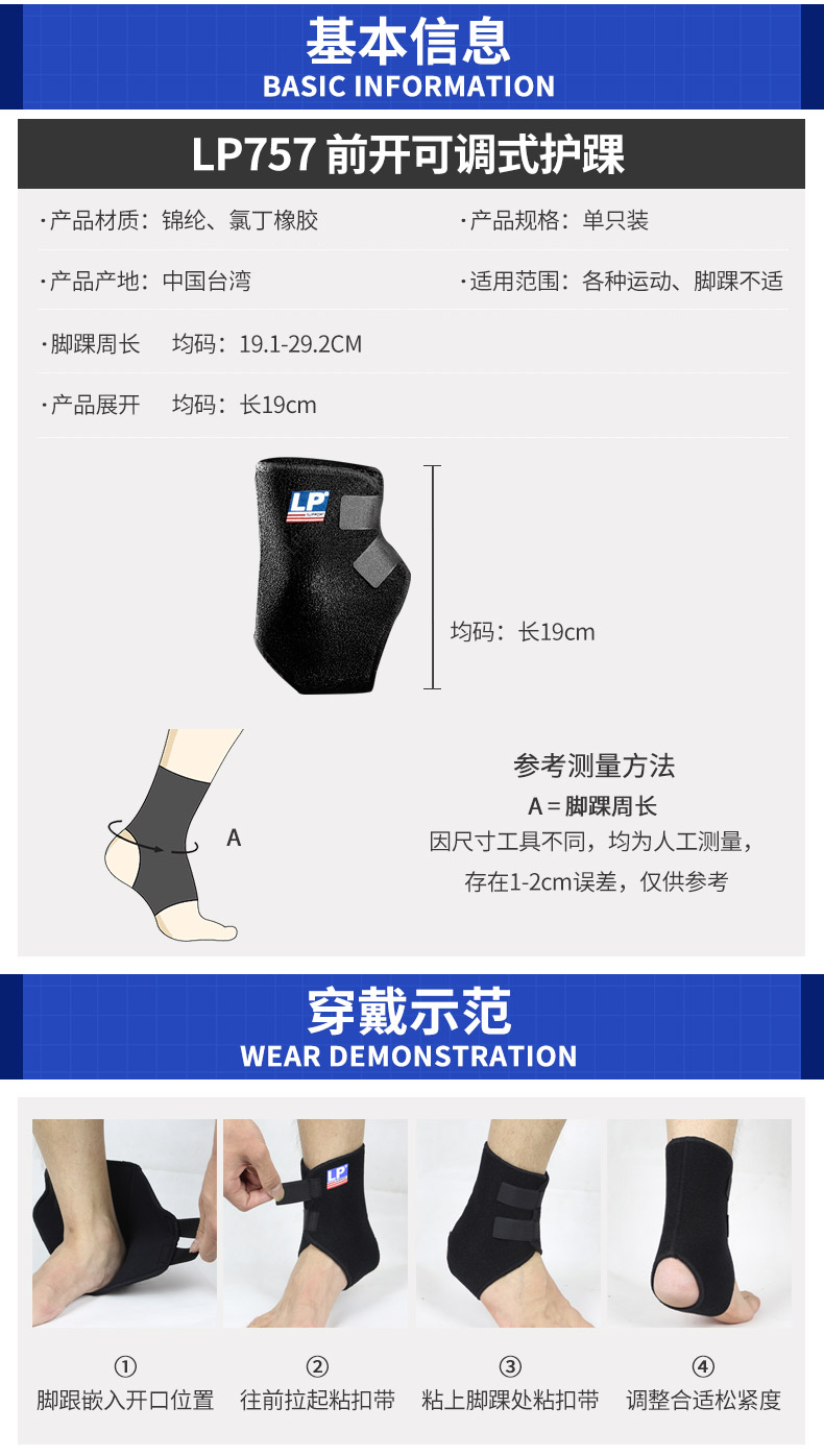 LP 护踝 前开可调式护踝757单只装