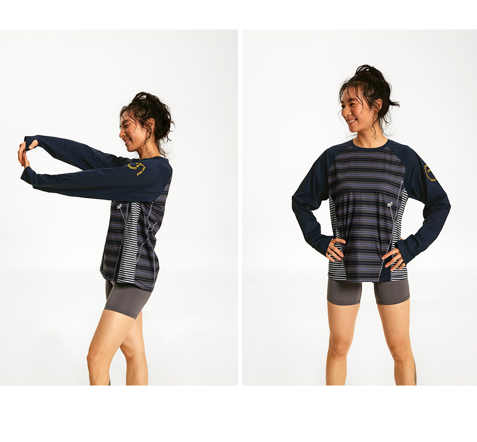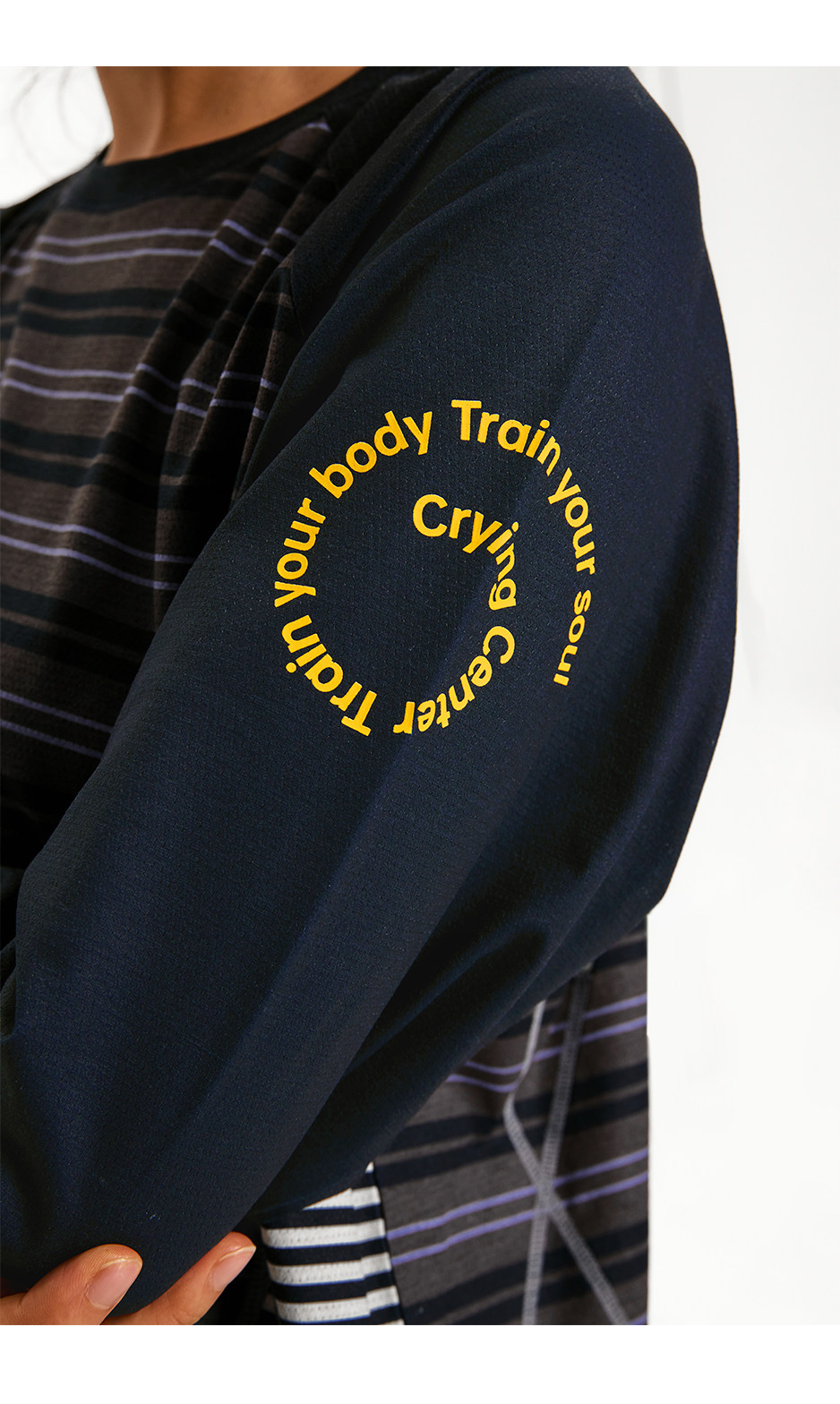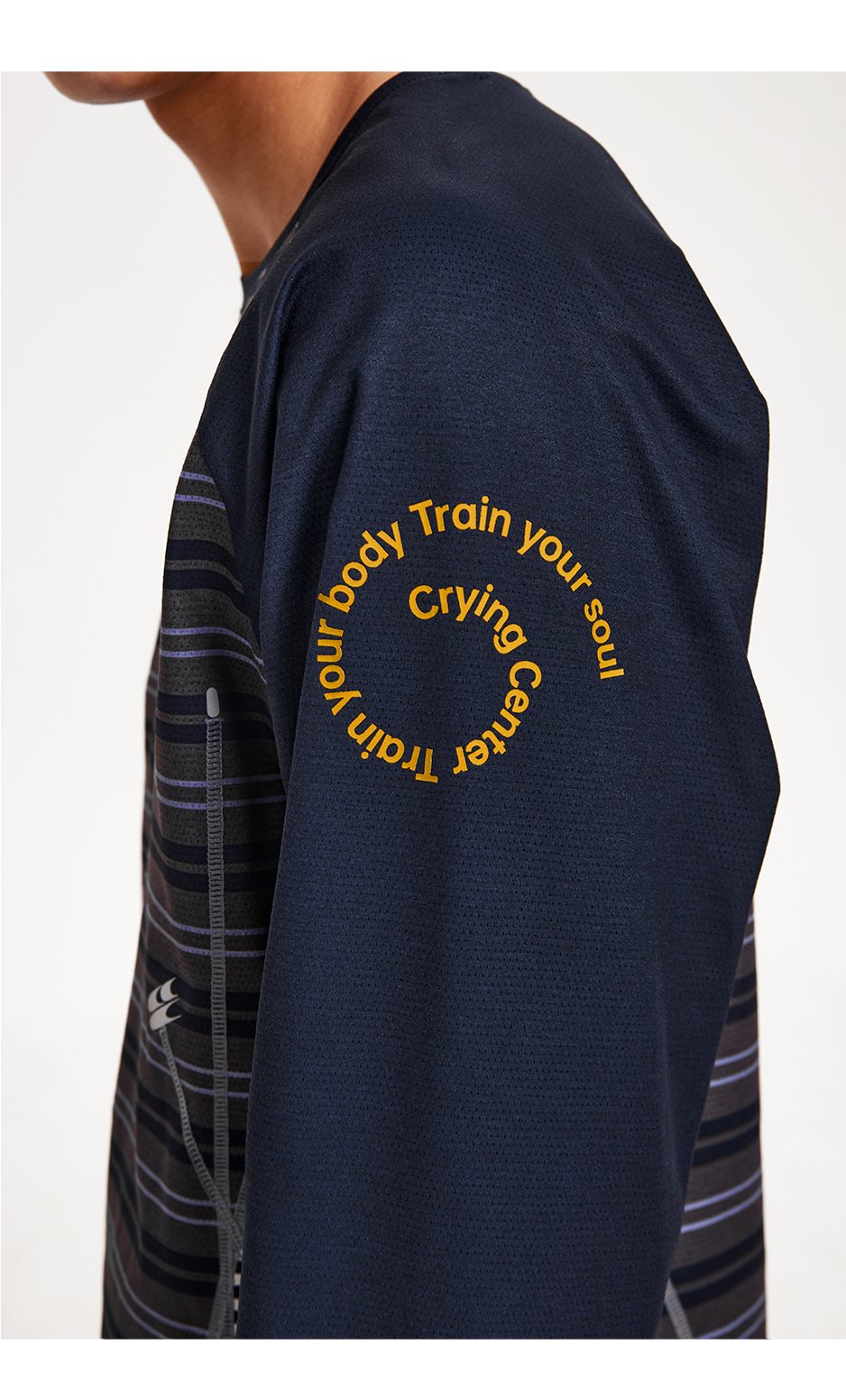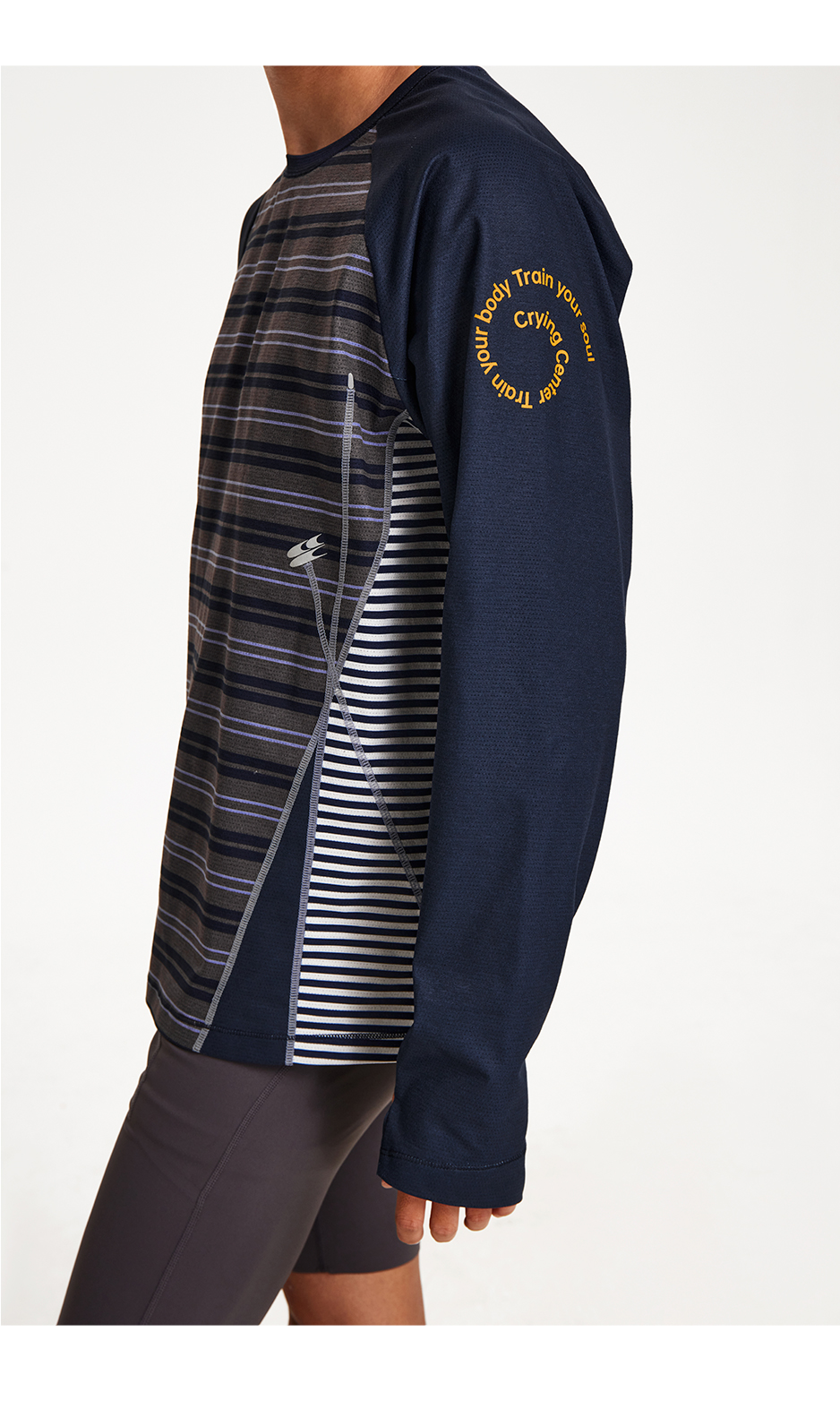 CryingCenter 条纹拼接撞色宽松透气速干跑步训练运动长袖上衣T恤