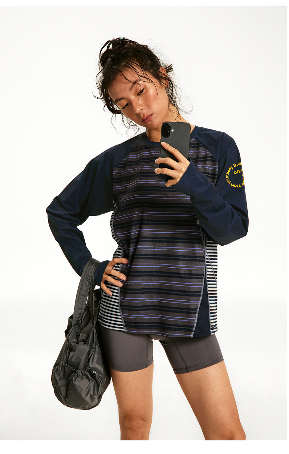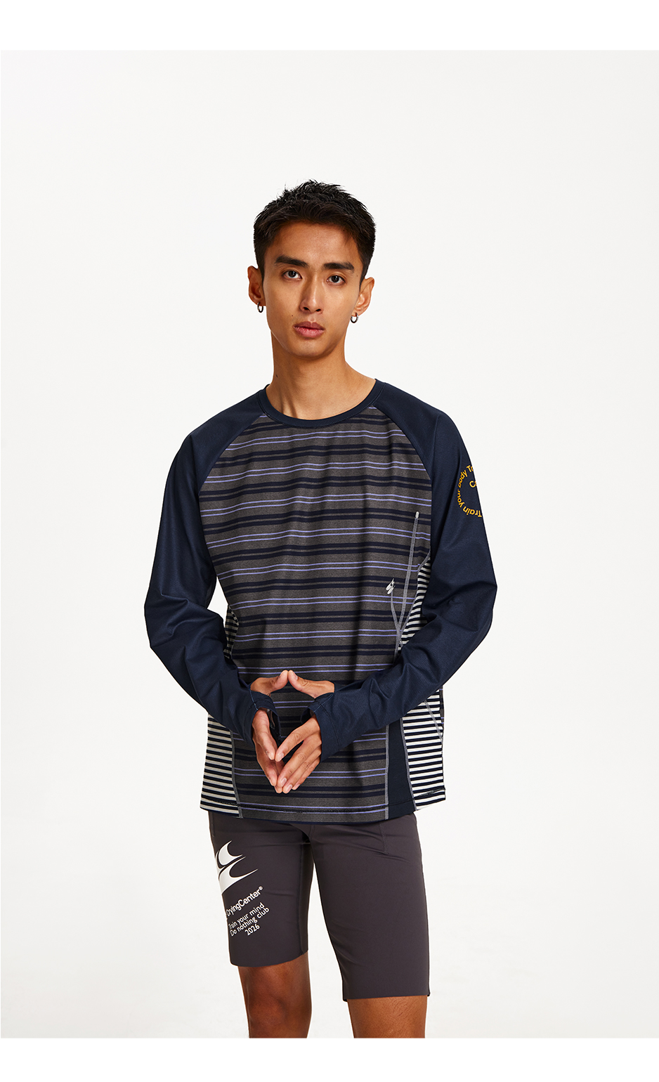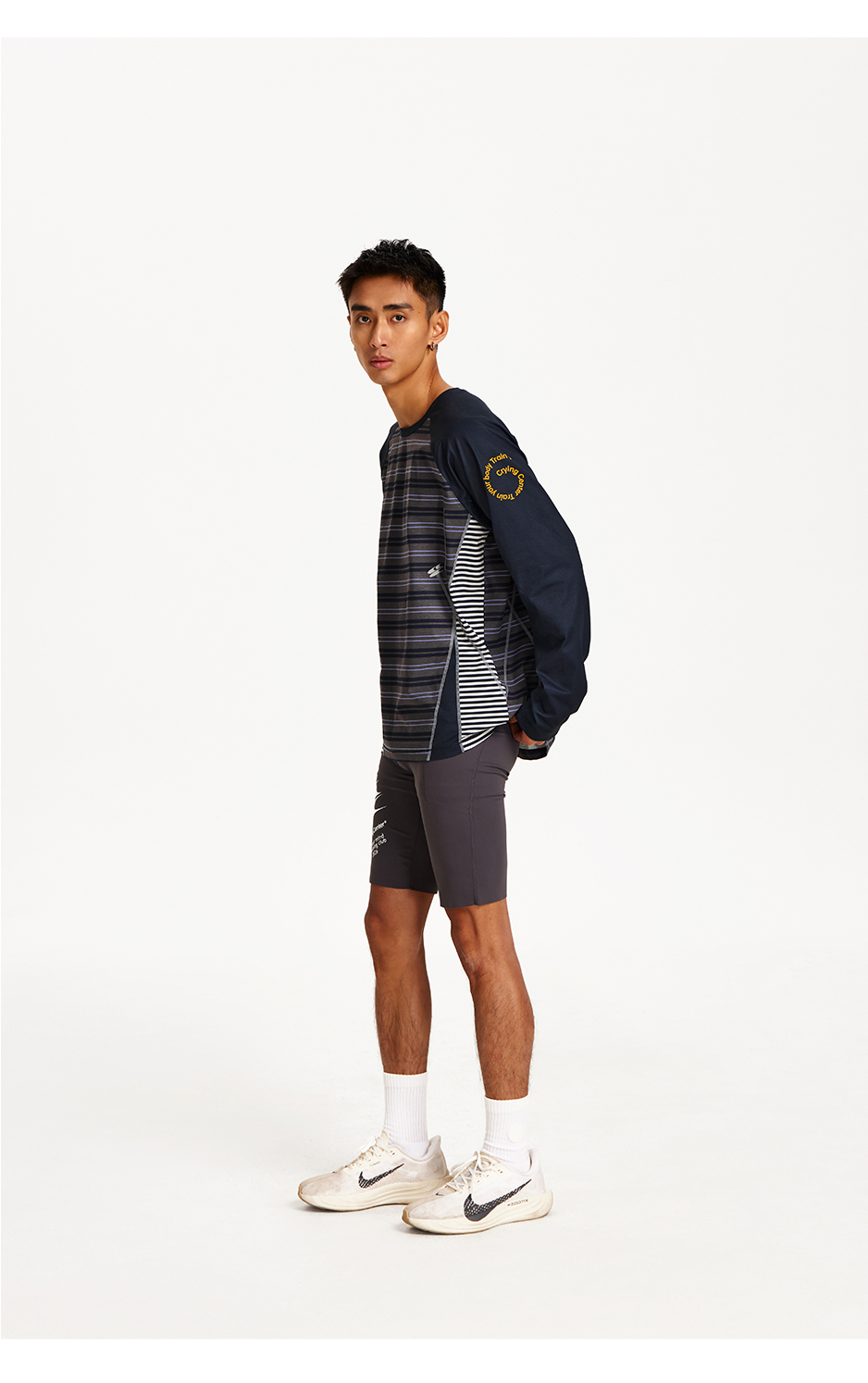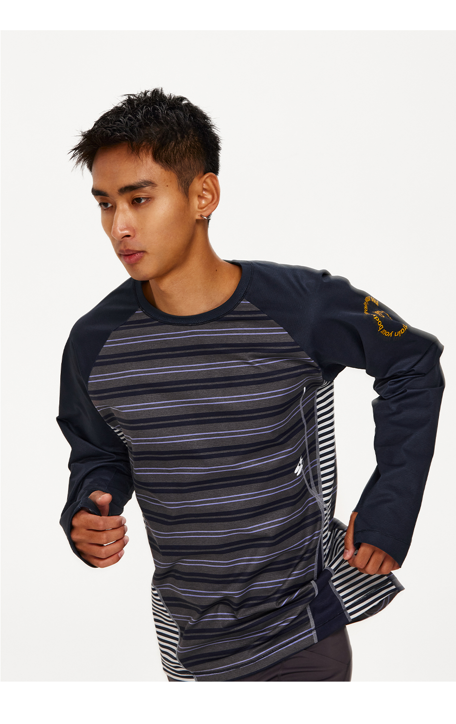 CryingCenter 条纹拼接撞色宽松透气速干跑步训练运动长袖上衣T恤