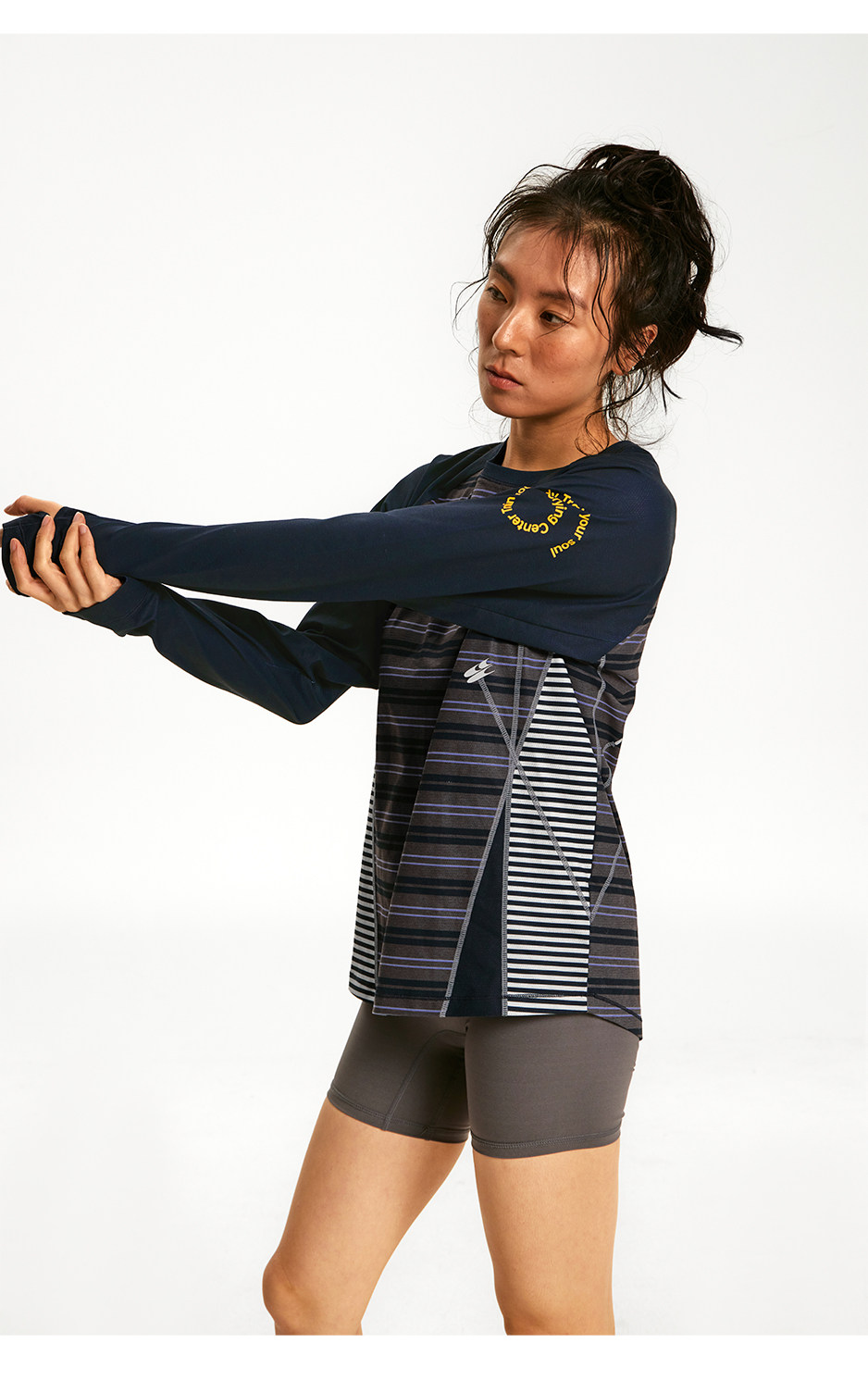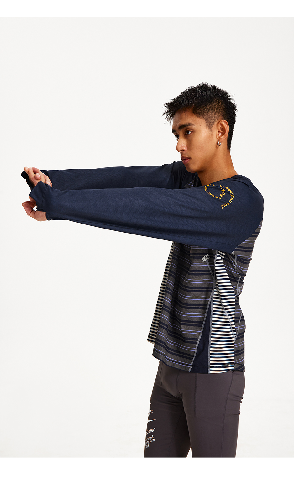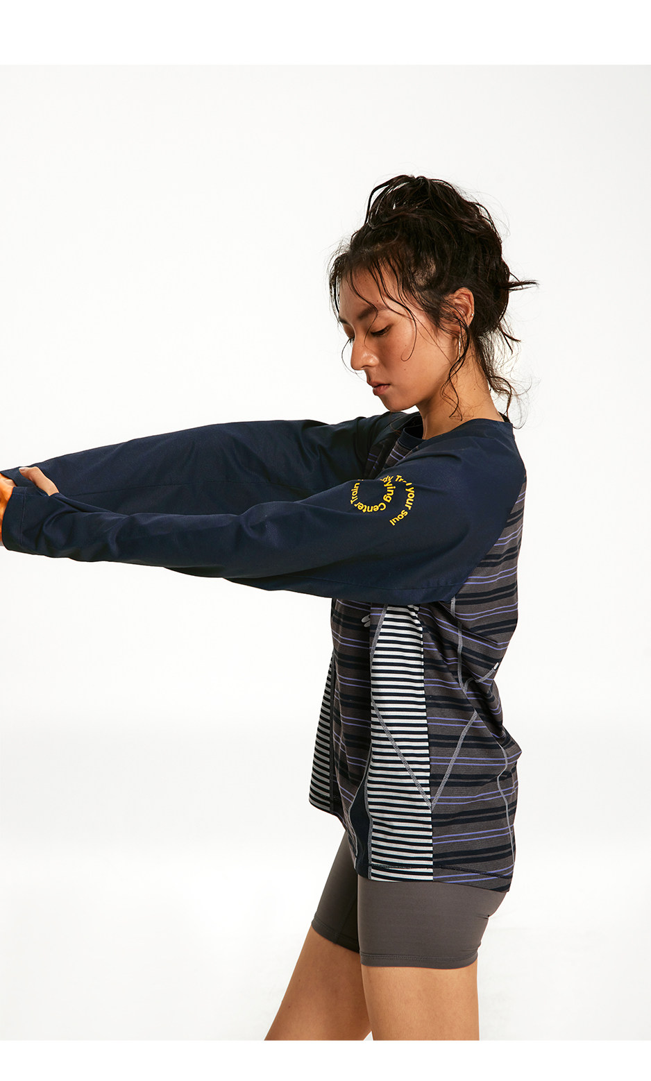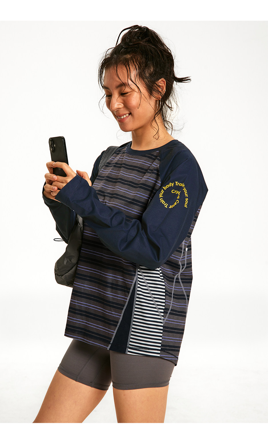 CryingCenter 条纹拼接撞色宽松透气速干跑步训练运动长袖上衣T恤
