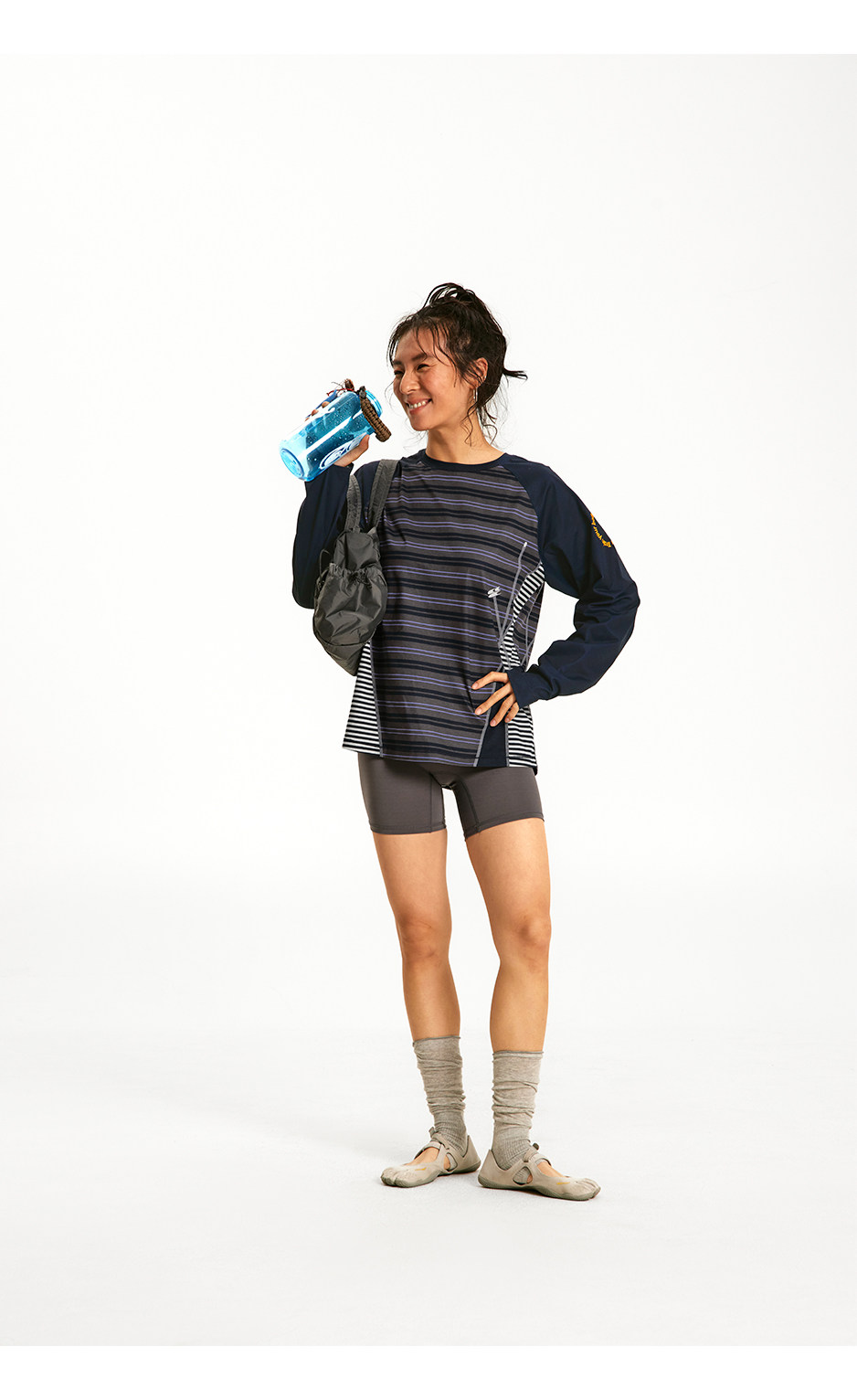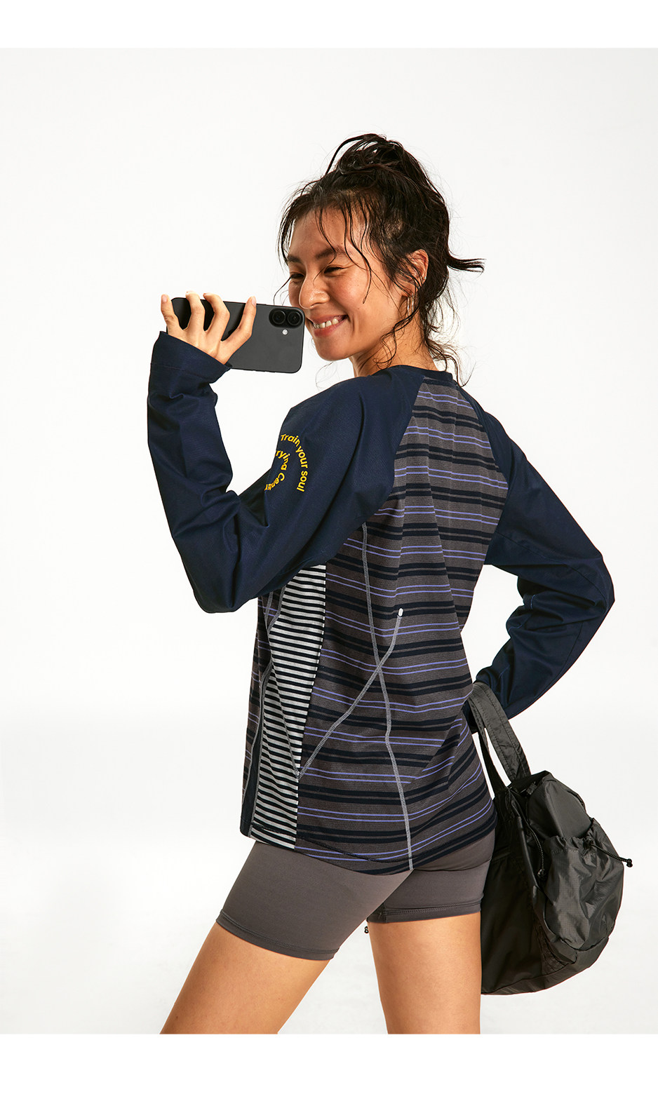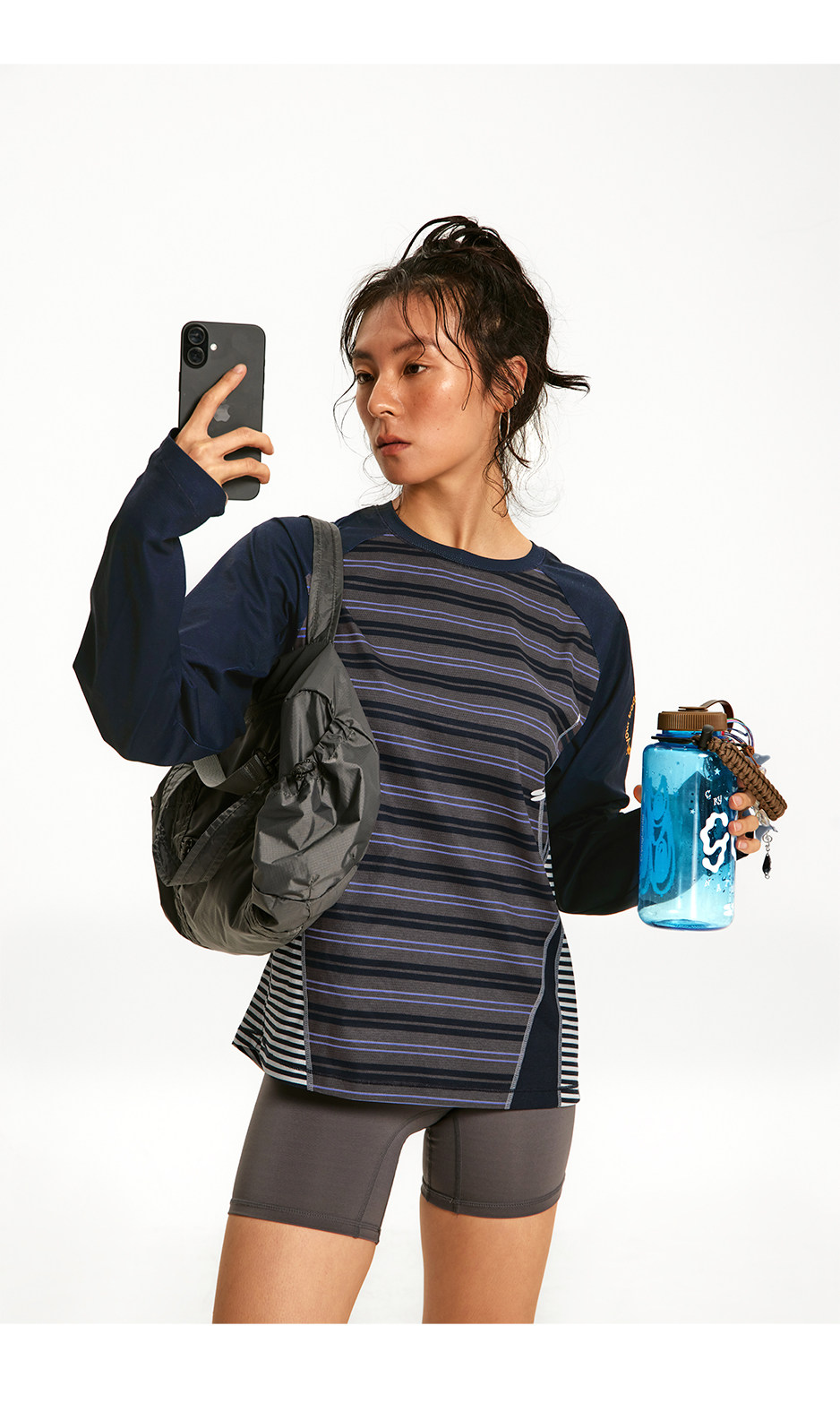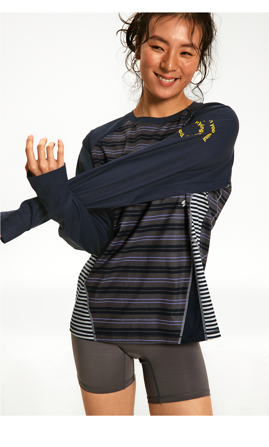 CryingCenter 条纹拼接撞色宽松透气速干跑步训练运动长袖上衣T恤