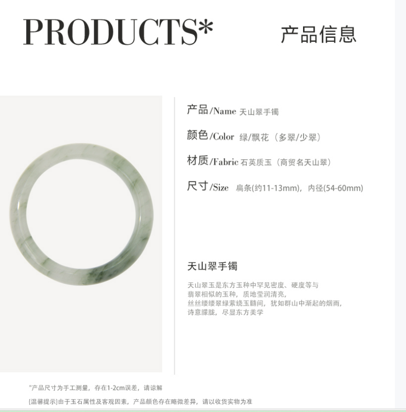 品名:GIRATI天山翠手镯 赠同材质吊坠