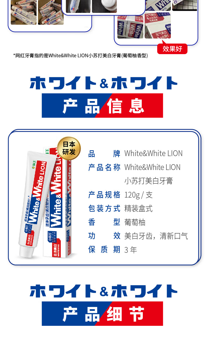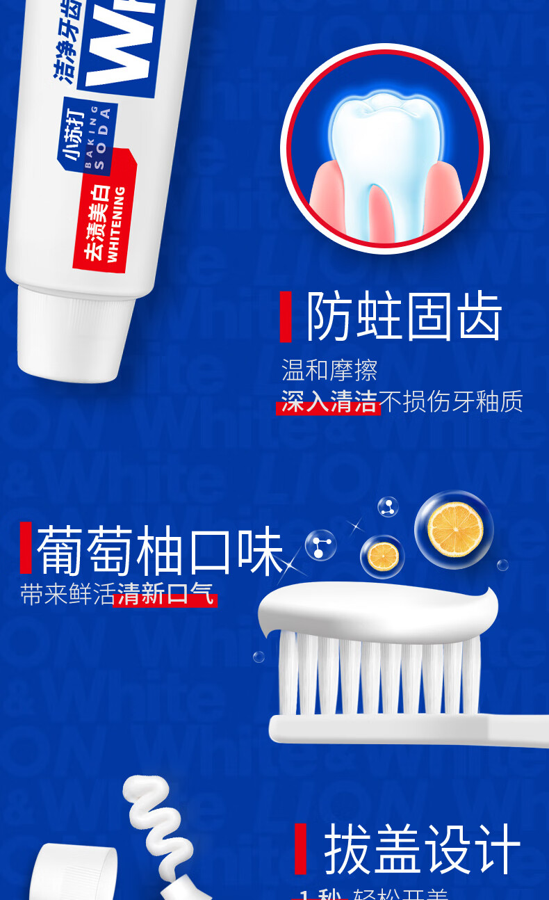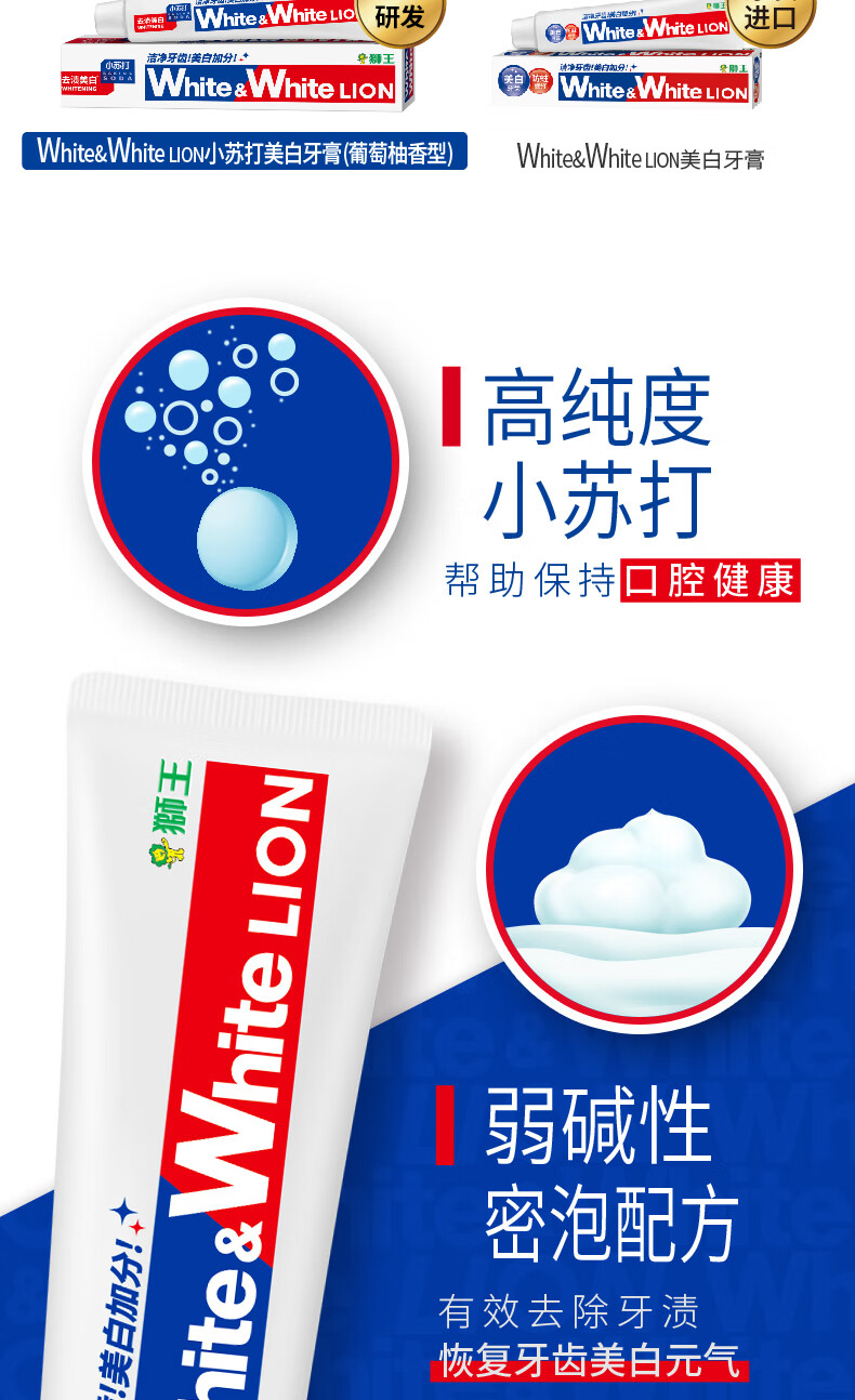 狮王 WHITE&WHITE小苏打元气美白牙膏(葡萄柚)120g*4