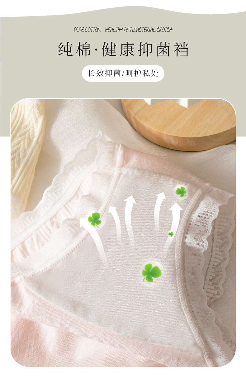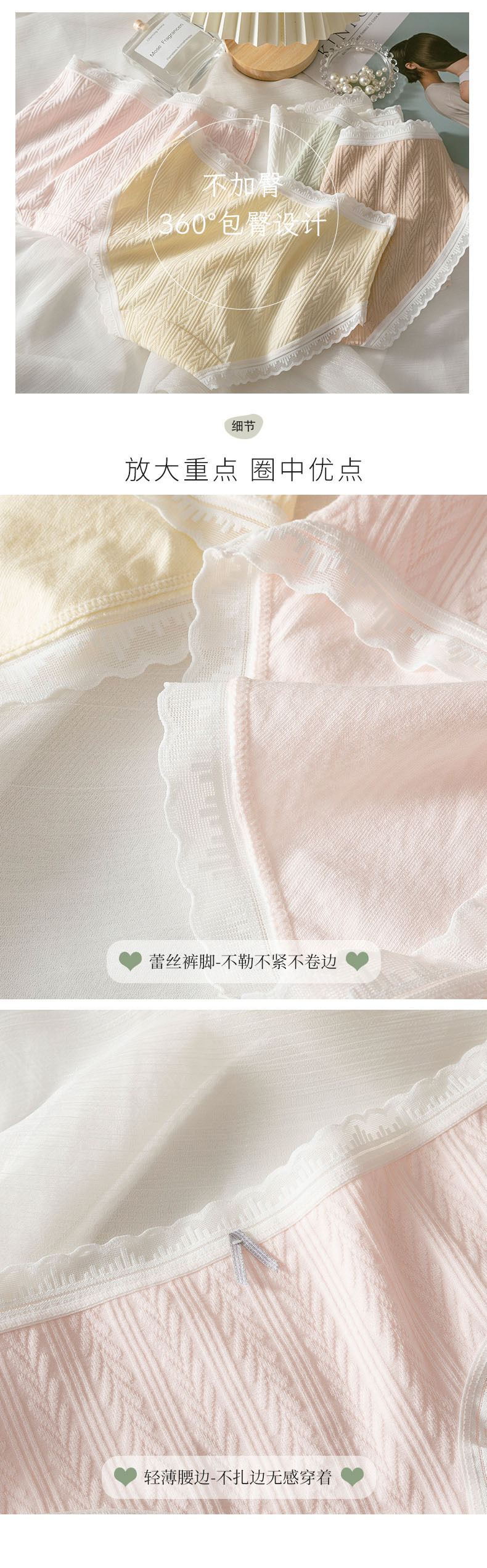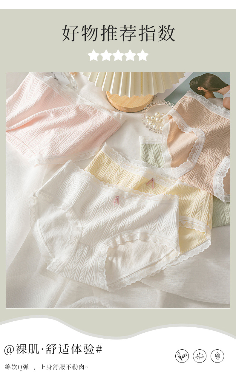宝娜斯蕾丝边中腰内裤女抗菌透气纯棉底裆三角裤女士无痕舒适短裤 心选到家