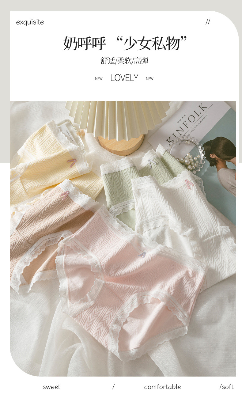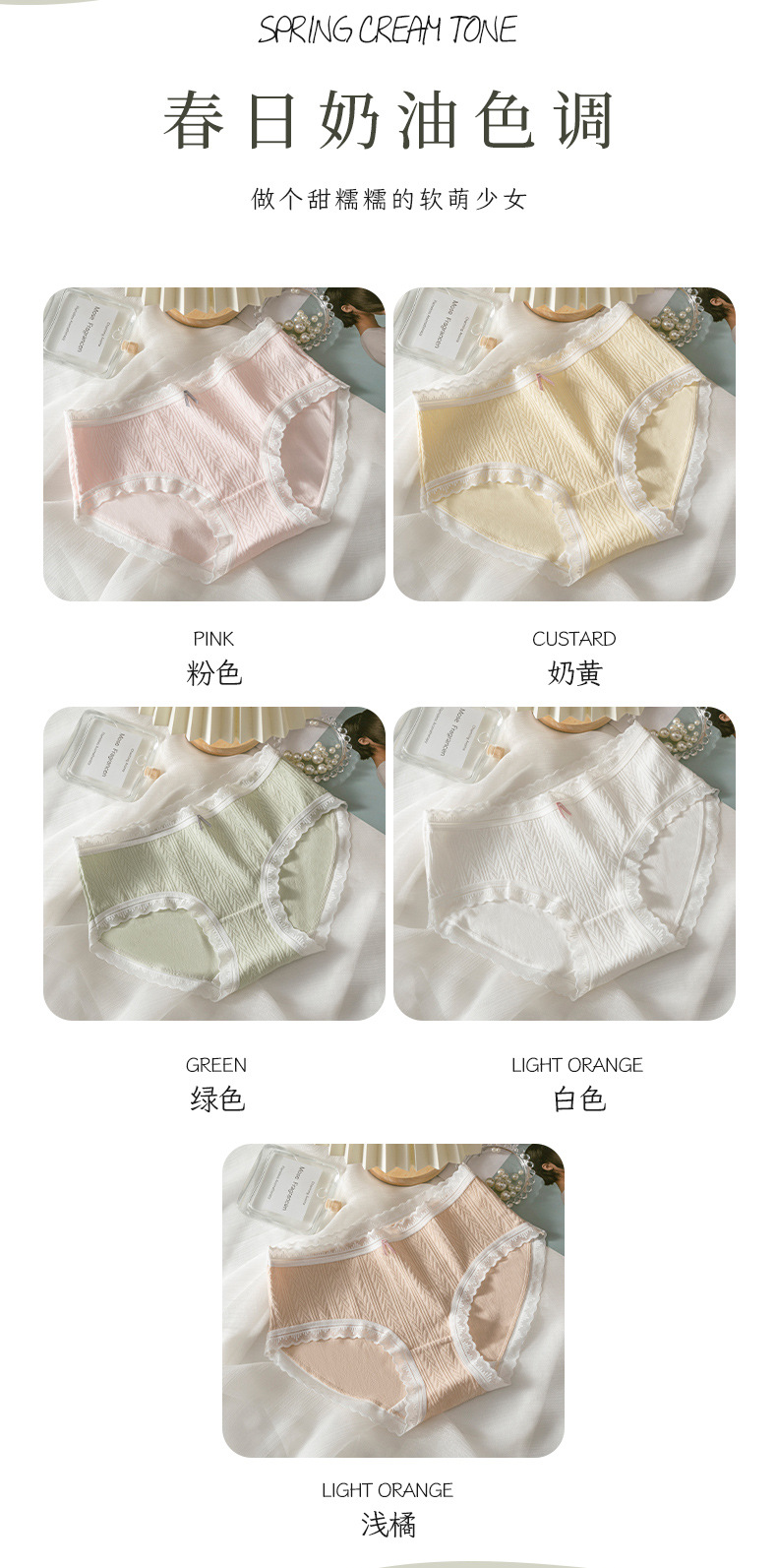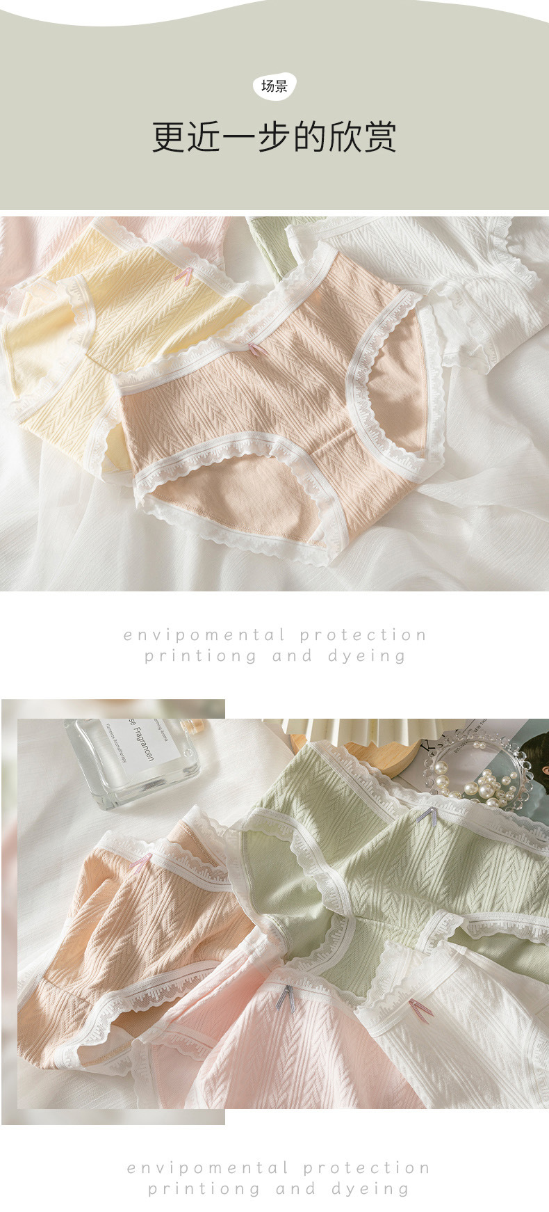 宝娜斯蕾丝边中腰内裤女抗菌透气纯棉底裆三角裤女士无痕舒适短裤 心选到家