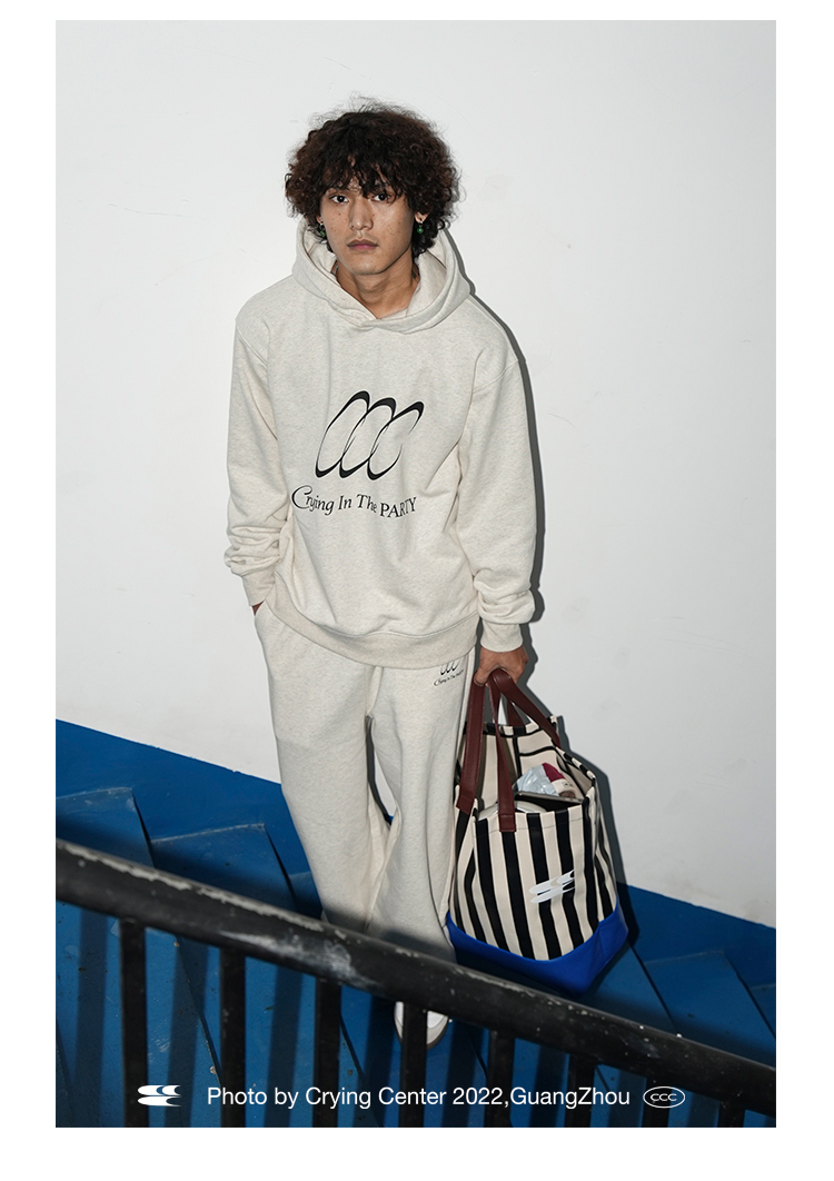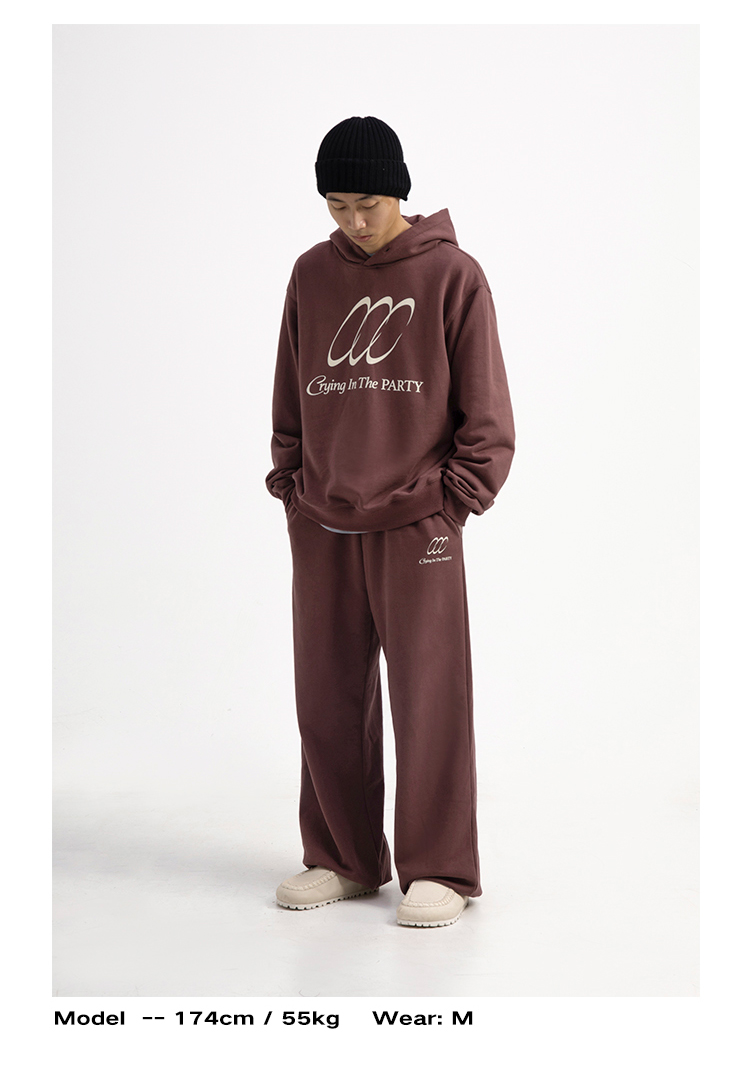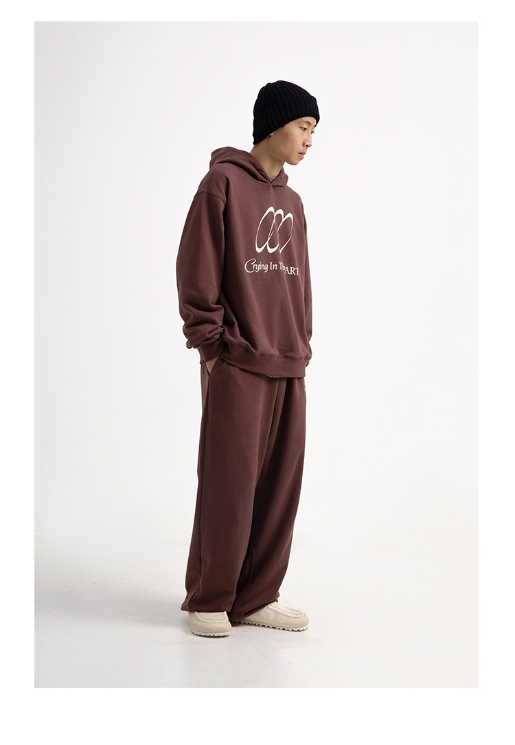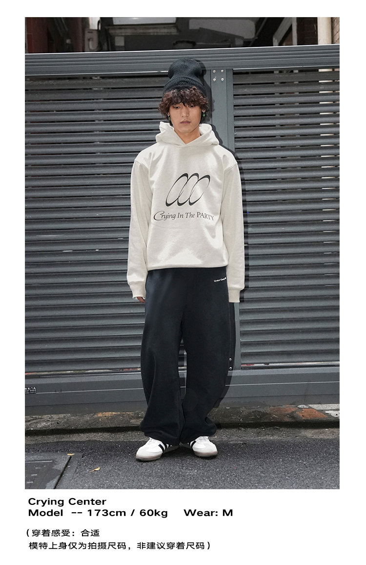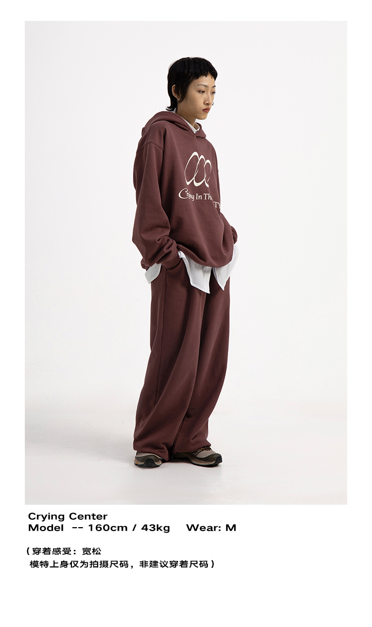 CryingCenter 3C印花连帽卫衣 燕麦色陶土色加绒套装 哭喊中心