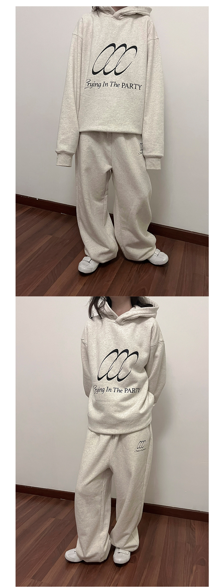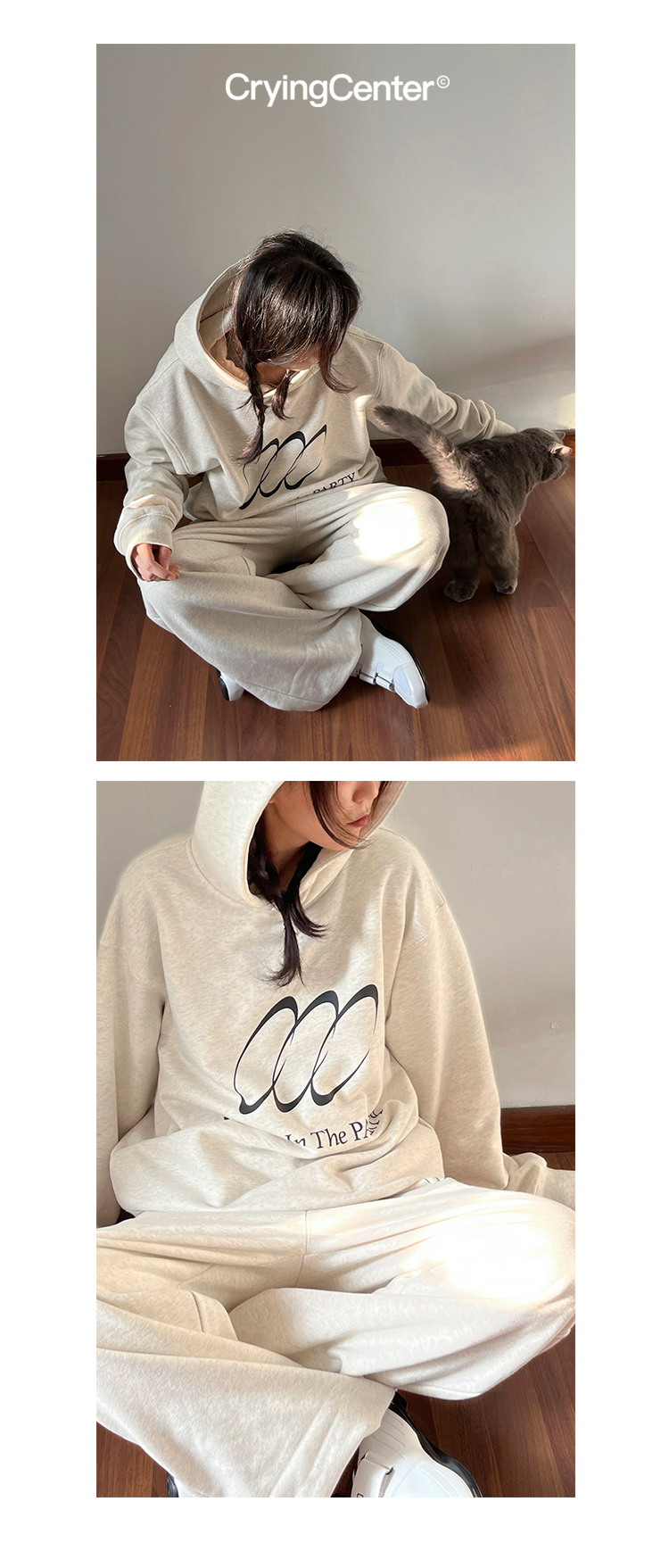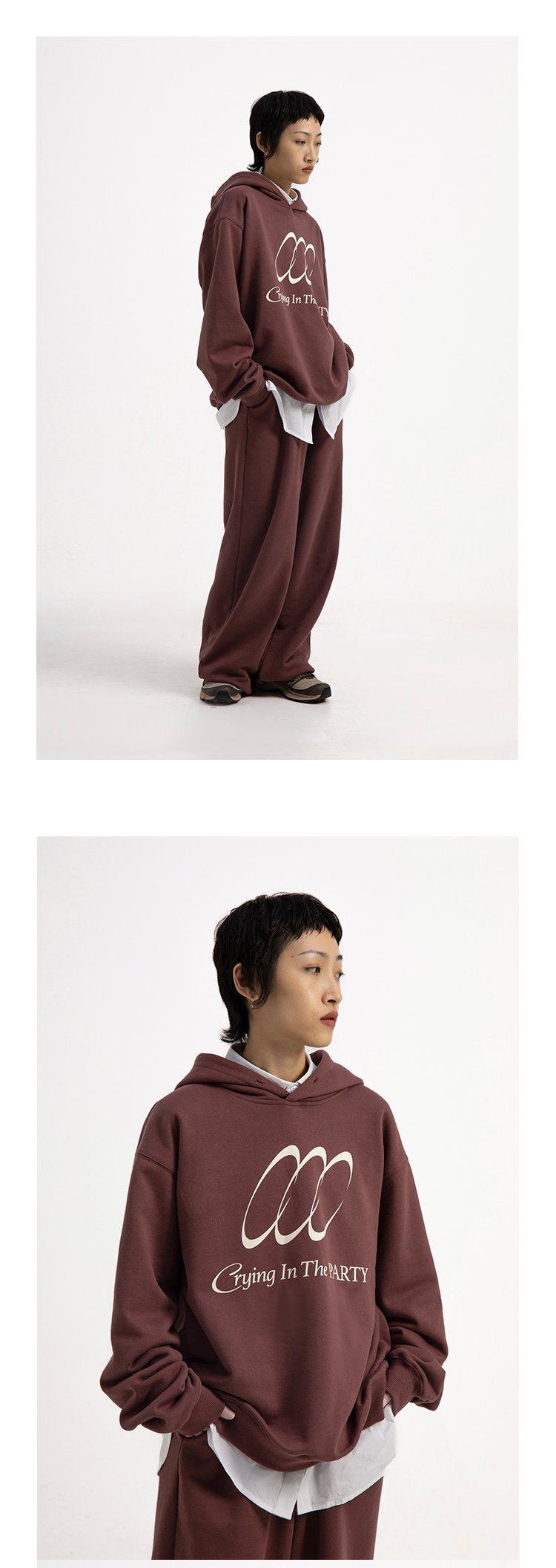 CryingCenter 3C印花连帽卫衣 燕麦色陶土色加绒套装 哭喊中心