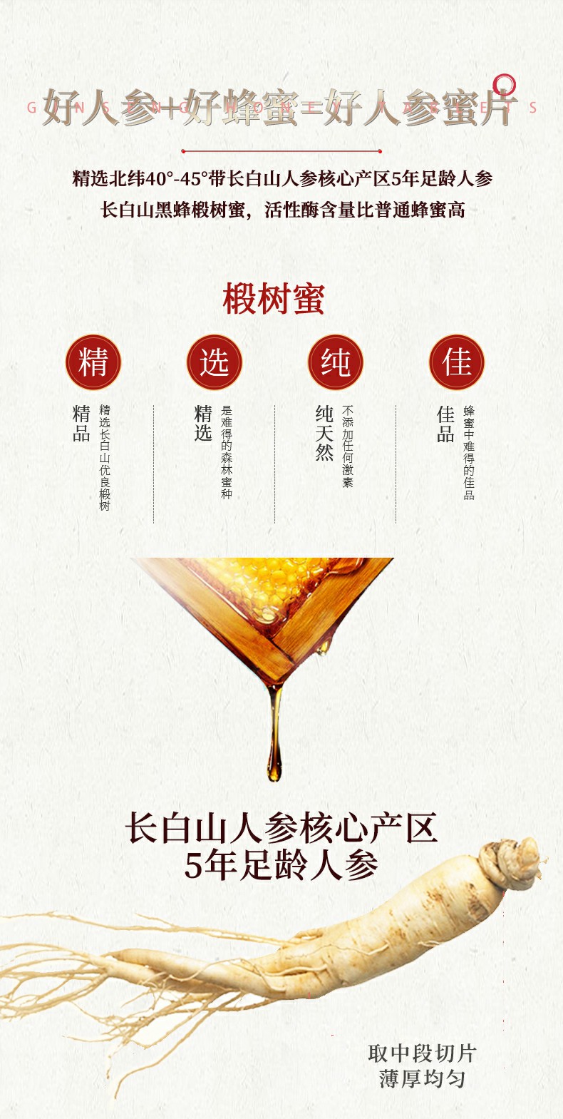 长白山人参 即食人参蜜片补品 鲜人参切片 50g/罐