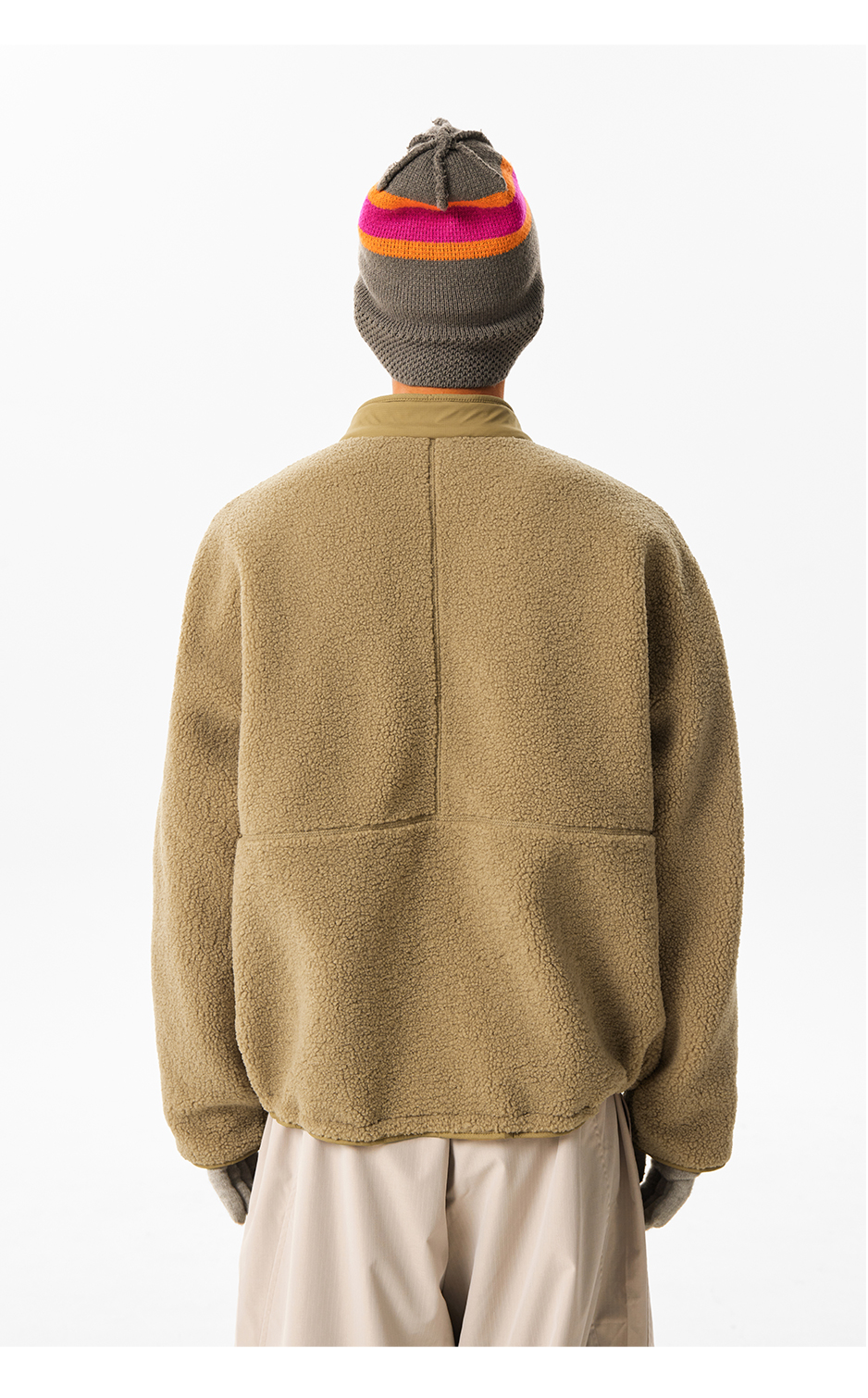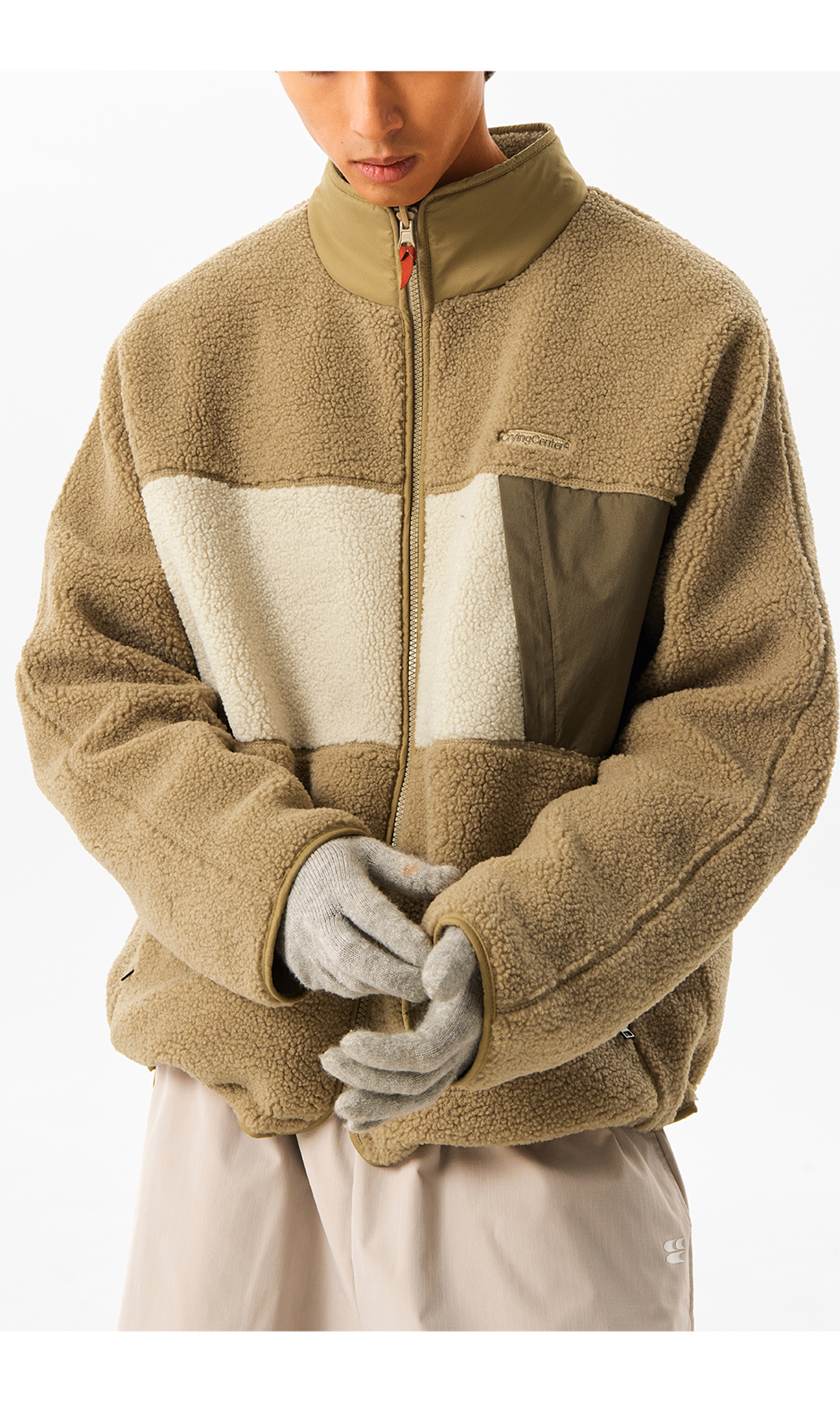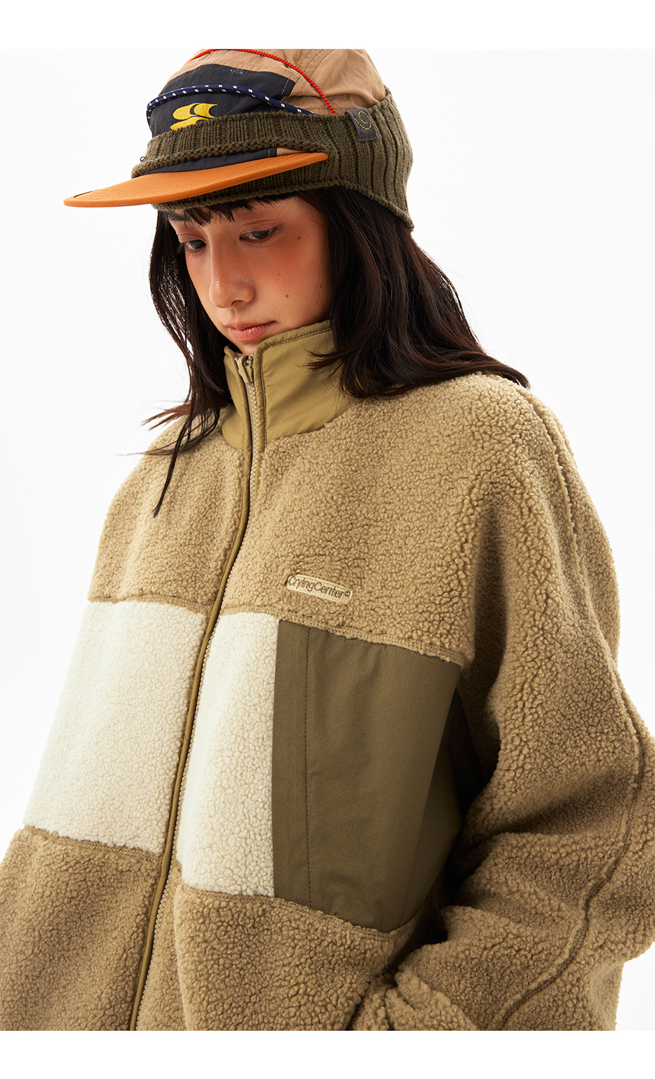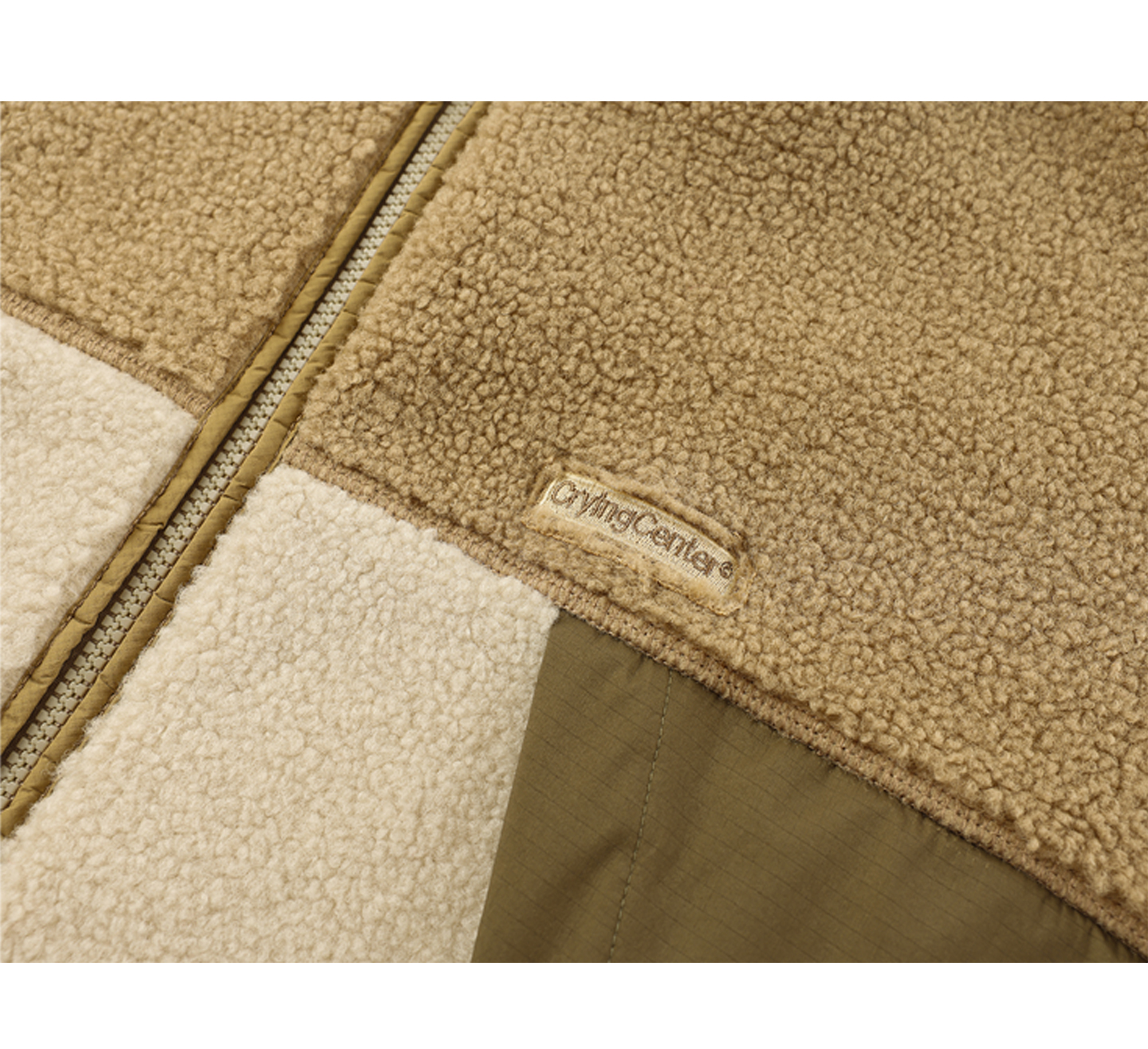CryingCenter宽松廓形拼接羊羔绒立领外套户外摇粒绒 哭喊中心